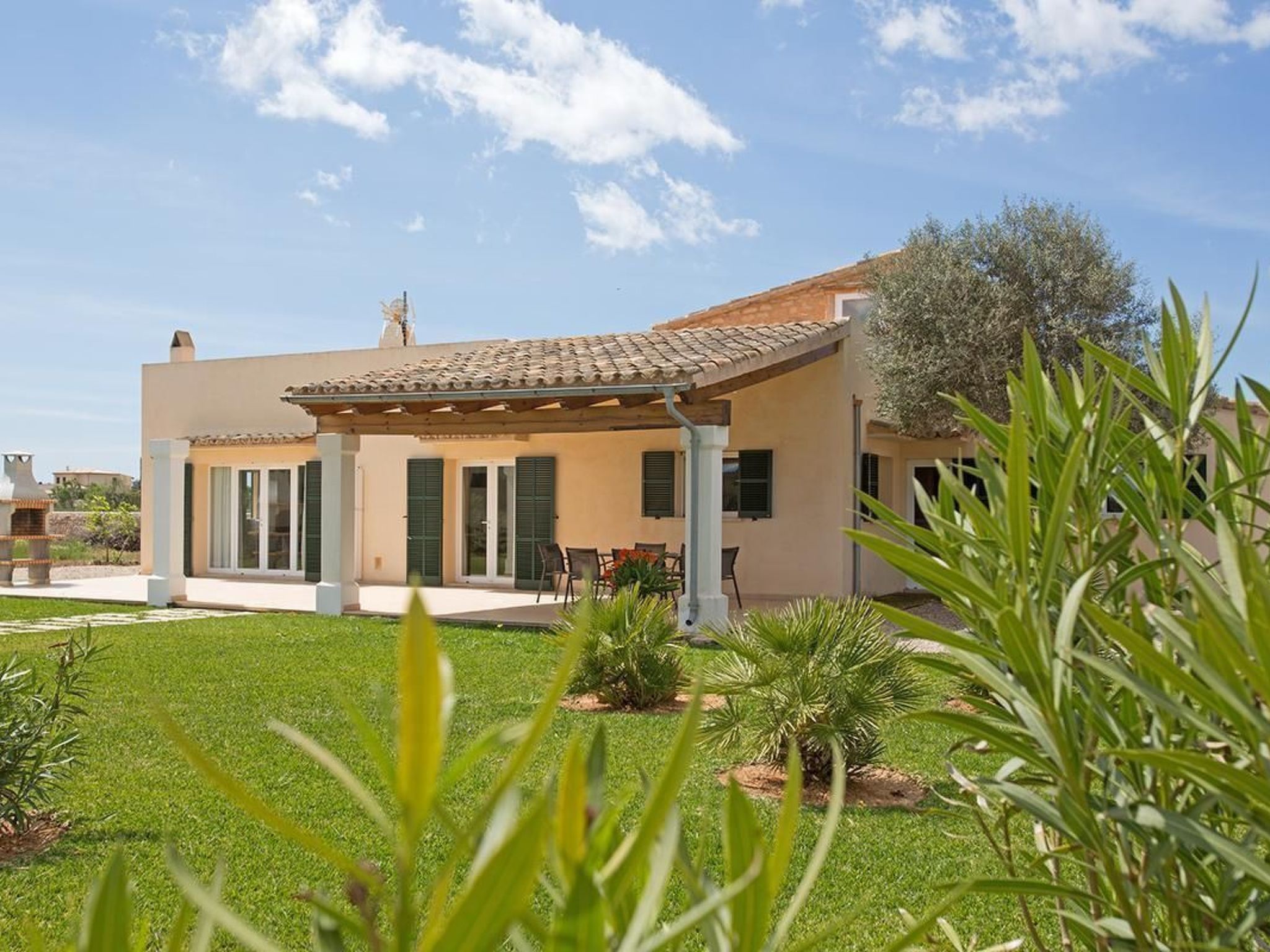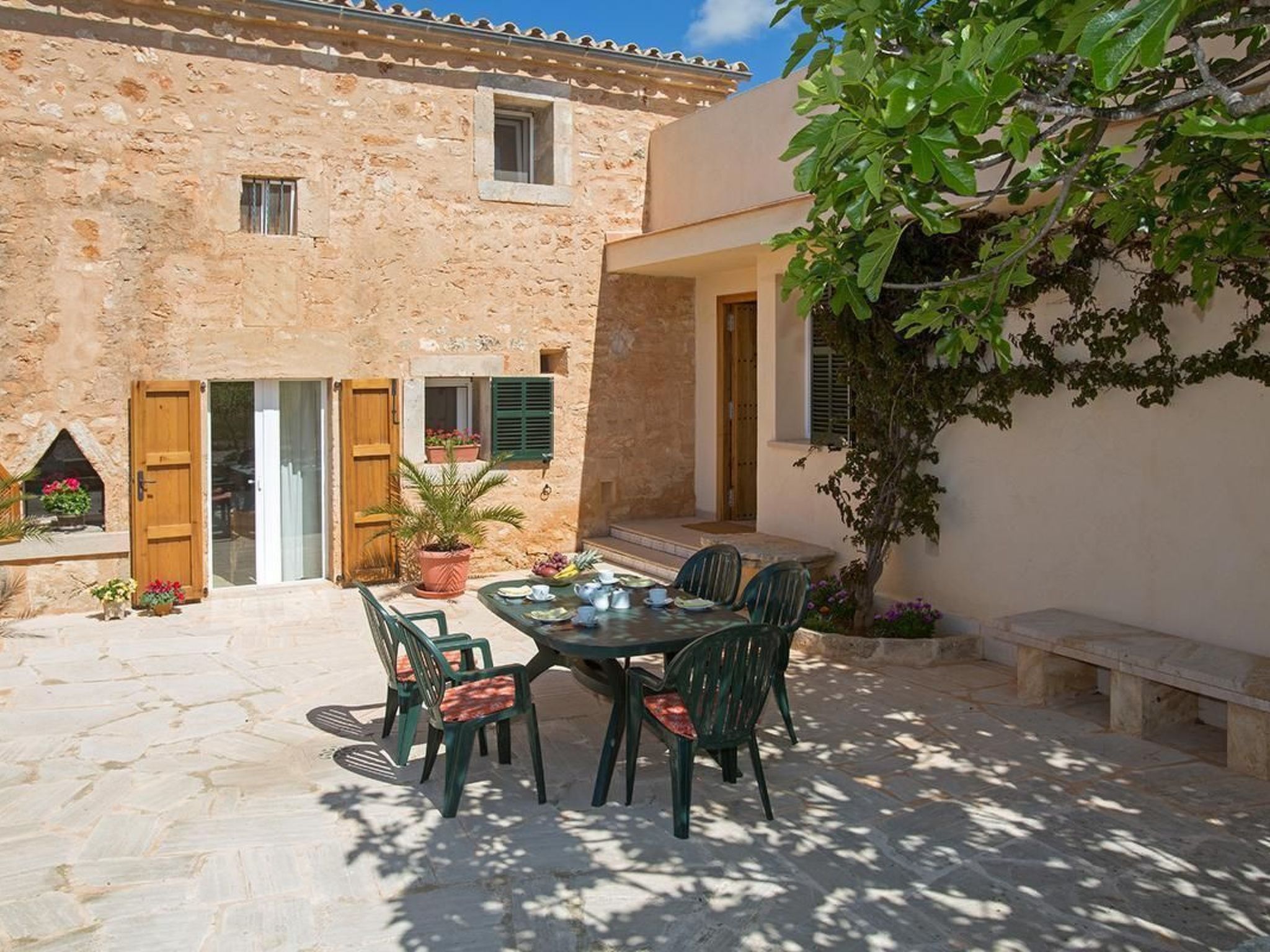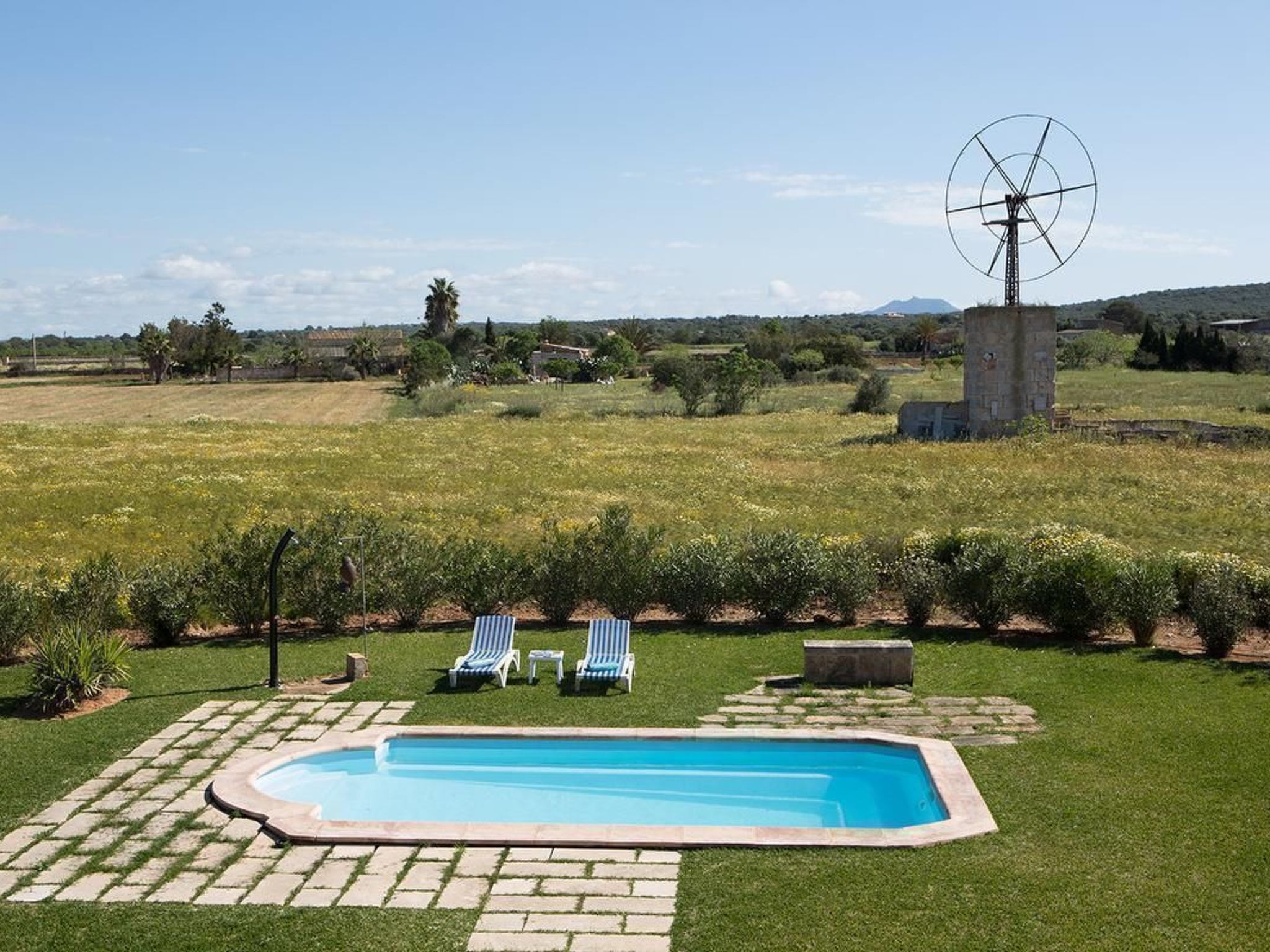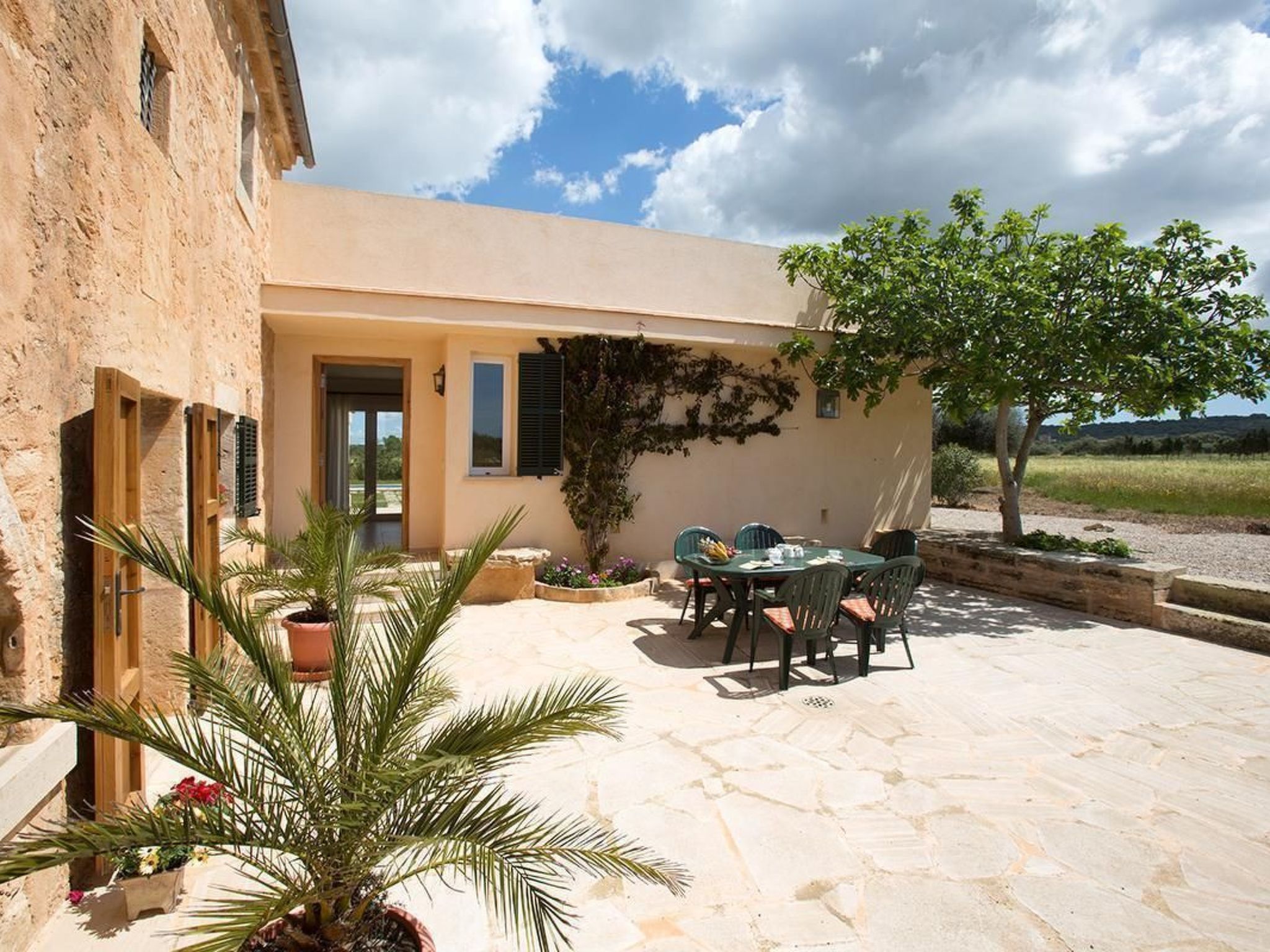 In the immediate neighbourhood there are scattered farms, private houses and a small cheese dairy. It is located in a quiet area in the countryside. The landlady lives five minutes away by car. The house is well suited for couples or families, pets are allowed, all windows are equipped with shutters and mosquito/fly nets, the property is fenced off from the property presentation path by a natural stone wall. Ideal house for relaxation or active holidays at any time of the year. Only five kilometres away you will find the most beautiful beaches of the island (Es Trenc, Es Carbó, Ets Estanys, Es Dolç) and not much further away the many romantic bays of the south-east coast (Cala Llombarts, Cala Santanyi, Cala S'Amonia, Cala Figuera, Cala Mondragó). Also within five kilometres you will find various supermarkets for shopping and several good restaurants. A golf course is 25 km away. After a few 100 metres you come to the large salt pans (bird sanctuary - guided tours by appointment). We also recommend a boat trip to the national park of the Cabrera archipelago (from Colonia de Sant Jordi).