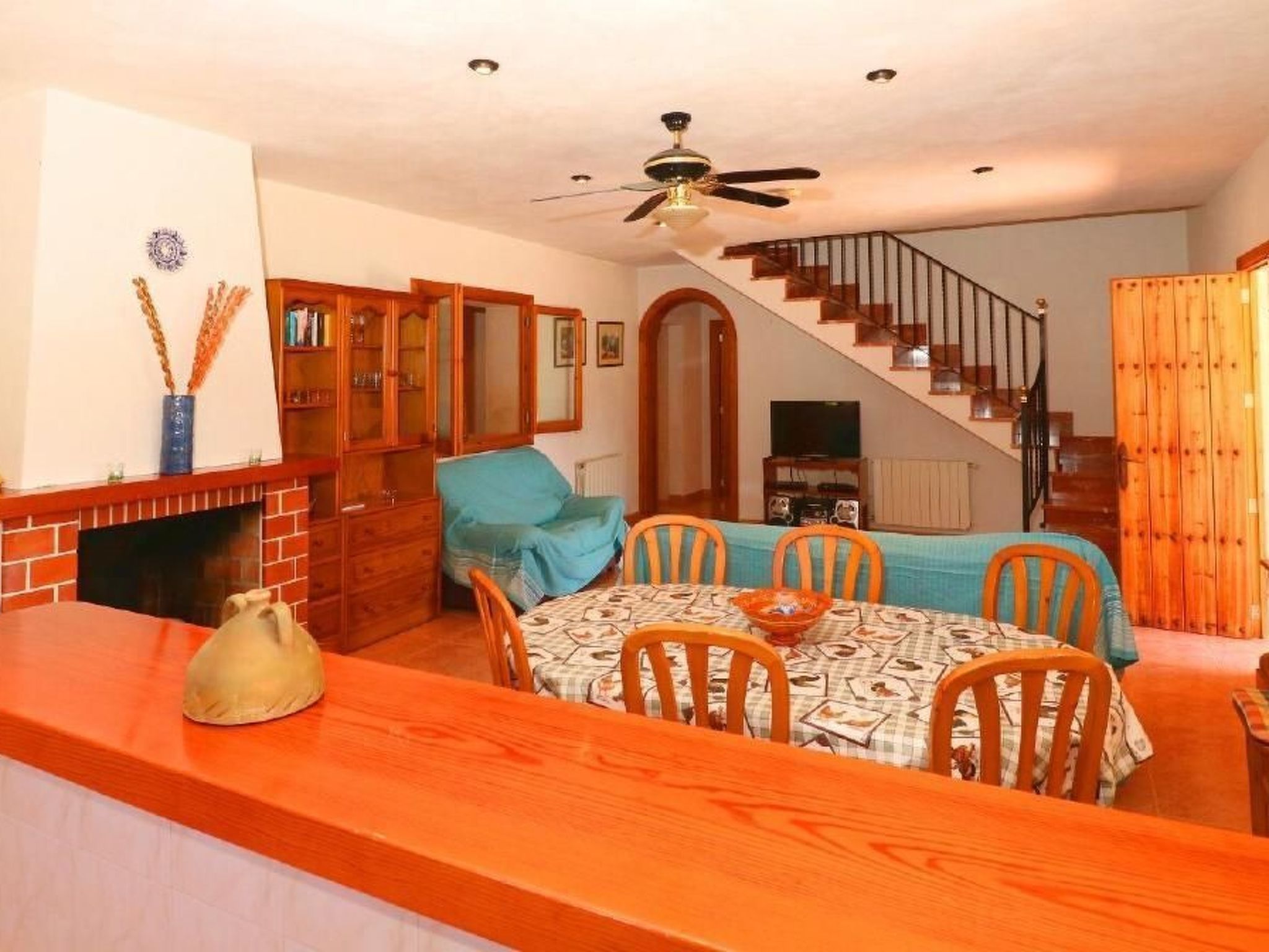 Finca Can Romero is located in the plain around Campos in the south of Mallorrca. The distance to Campos is approx. 6 km. The extensive beaches in the south of the island are within easy reach and the small bays in the east are also just a short drive away.230 square metres of living space spread over two floors, Finca Romero has 2 bedrooms on the ground floor, one of which has an en-suite bathroom, a living room and a kitchen with dining area and fireplace. On the upper floor there is a further bedroom and a bathroom, all rooms with AC. The finca offers enough space for 6 people and a small child and several terraces, some covered, and a barbecue area offer plenty of space for outdoor living. In the idyllic garden there is a 10 m x 5 m pool surrounded by a sunbathing lawn and the house offers the possibility of charging the hire car/e-car on the property. For further information please contact us.living/dining room