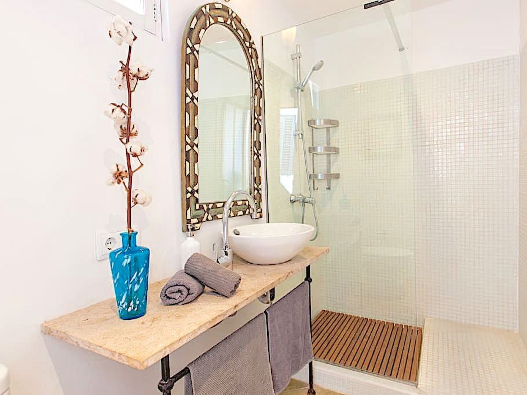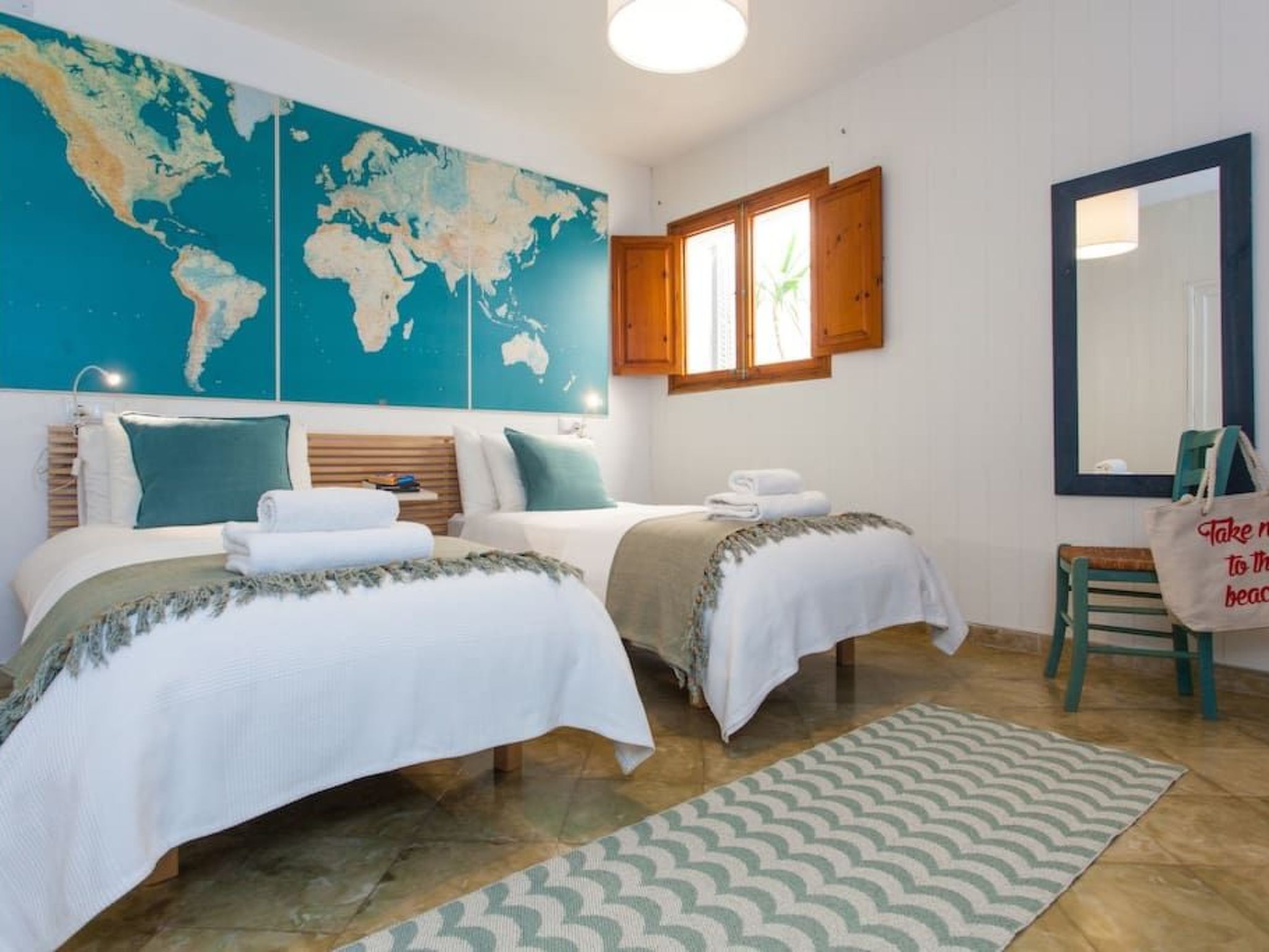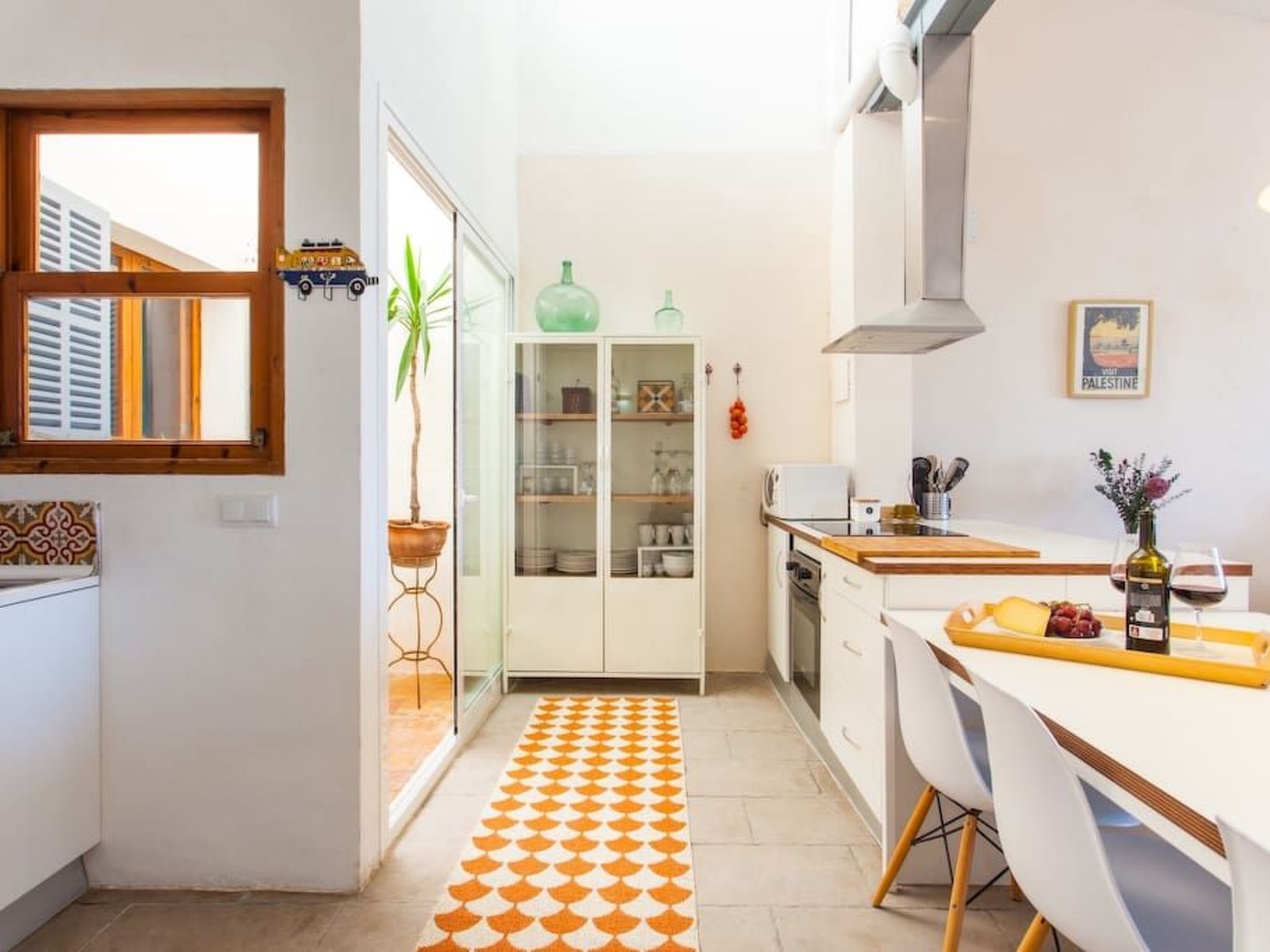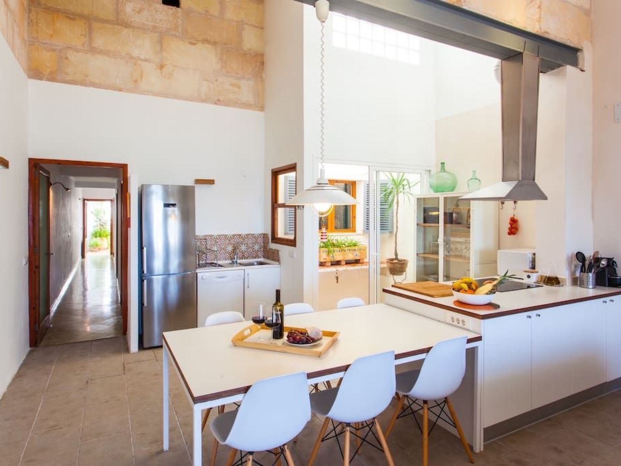 The restored Mallorcan fisherman's house Casa Gaviota is located directly on the promenade and just a few metres from the small sandy beach of Cala Galiota and offers space for six people and has been completely renovated to create a charming holiday home with a stylish atmosphere. At the front is a typical fisherman's house terrace with a barbecue and dining area. From here you can enjoy the wonderful view of the Colonia Sant Jordi lighthouse and the small sandy beach. The interior of the house is bright and friendly and has numerous amenities. There is a fireplace in the living room for the low season, and the bedrooms are also heated.The location of the house is perfect if you want to enjoy the advantages of Colonia Sant Jordi. Numerous restaurants are within easy walking distance - we particularly recommend Laos, Cassai Beach and Sal de Coco directly in the harbour.Sports: numerous water sports such as kayaking, water skiing and sailing are possible. The nearest golf course is only 30 minutes away by car.