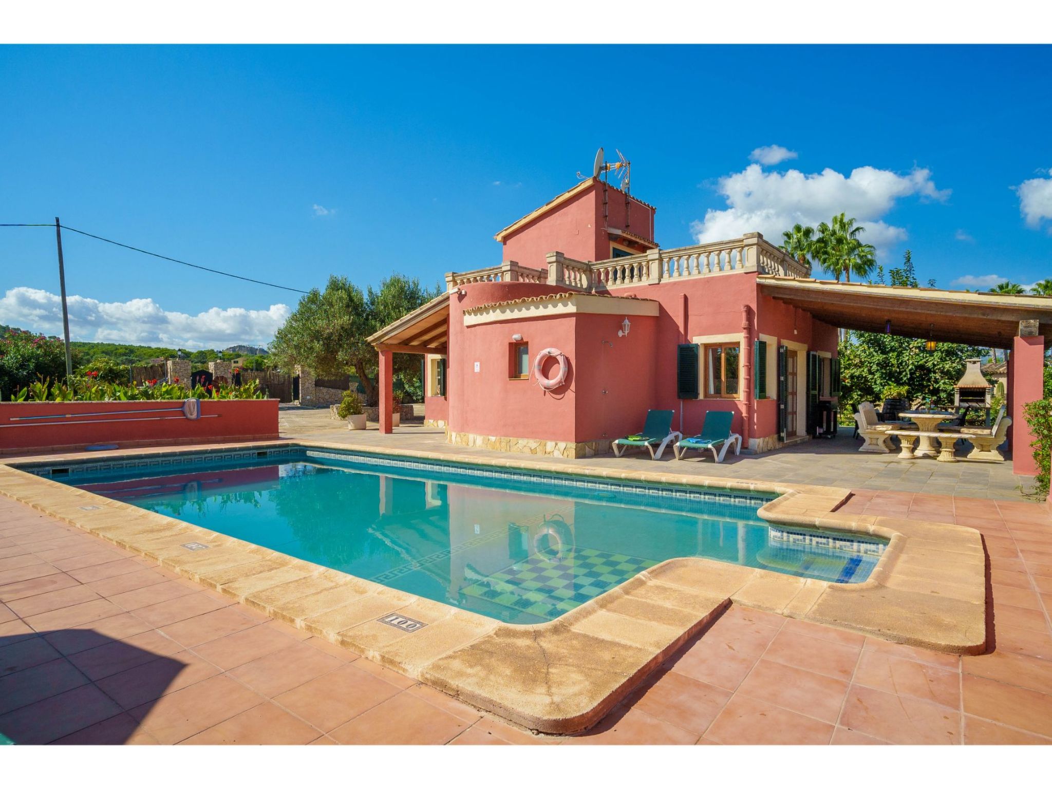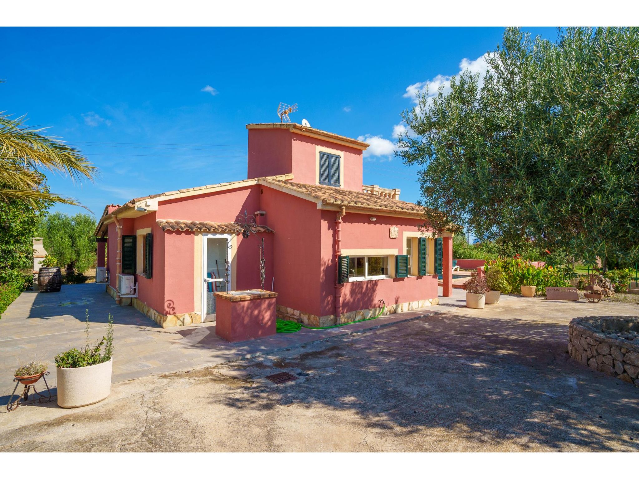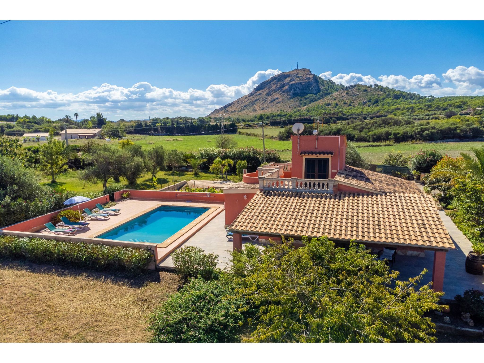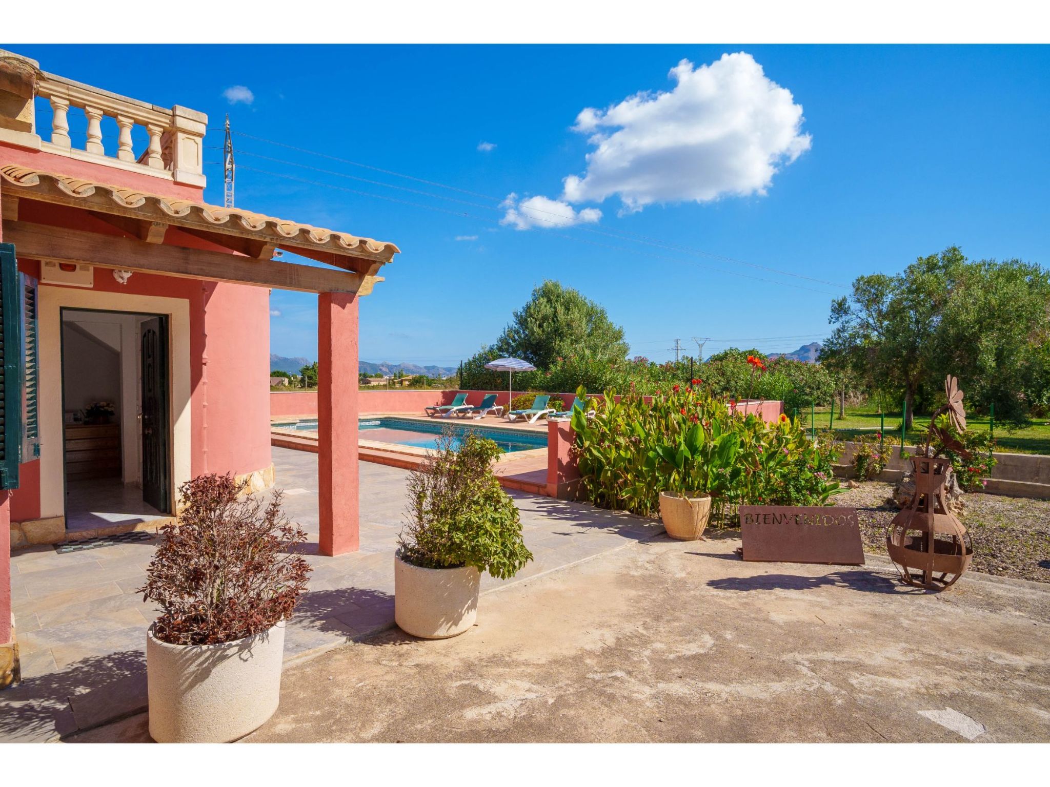 Belle maison individuelle "Sa Olivera". À 3 km du centre d'Alcúdia, à 23 km du centre d'Inca, à 47 km du centre de Cala Ratjada, à 4 km de la mer. A usage privé: terrain à l'état naturel 1'000 m2 (clôturé) avec pelouse et plantes, piscine (8 x 4 m, disponibilité saisonnière: 01.Jan. - 31.Dec.). Douche extérieure, place de parking sur le terrain. Magasins 4 km, supermarché 4 km, arrêt de bus 3 km, plage de sable "Alcúdia" 4 km. Veuillez noter: voiture recommandée.