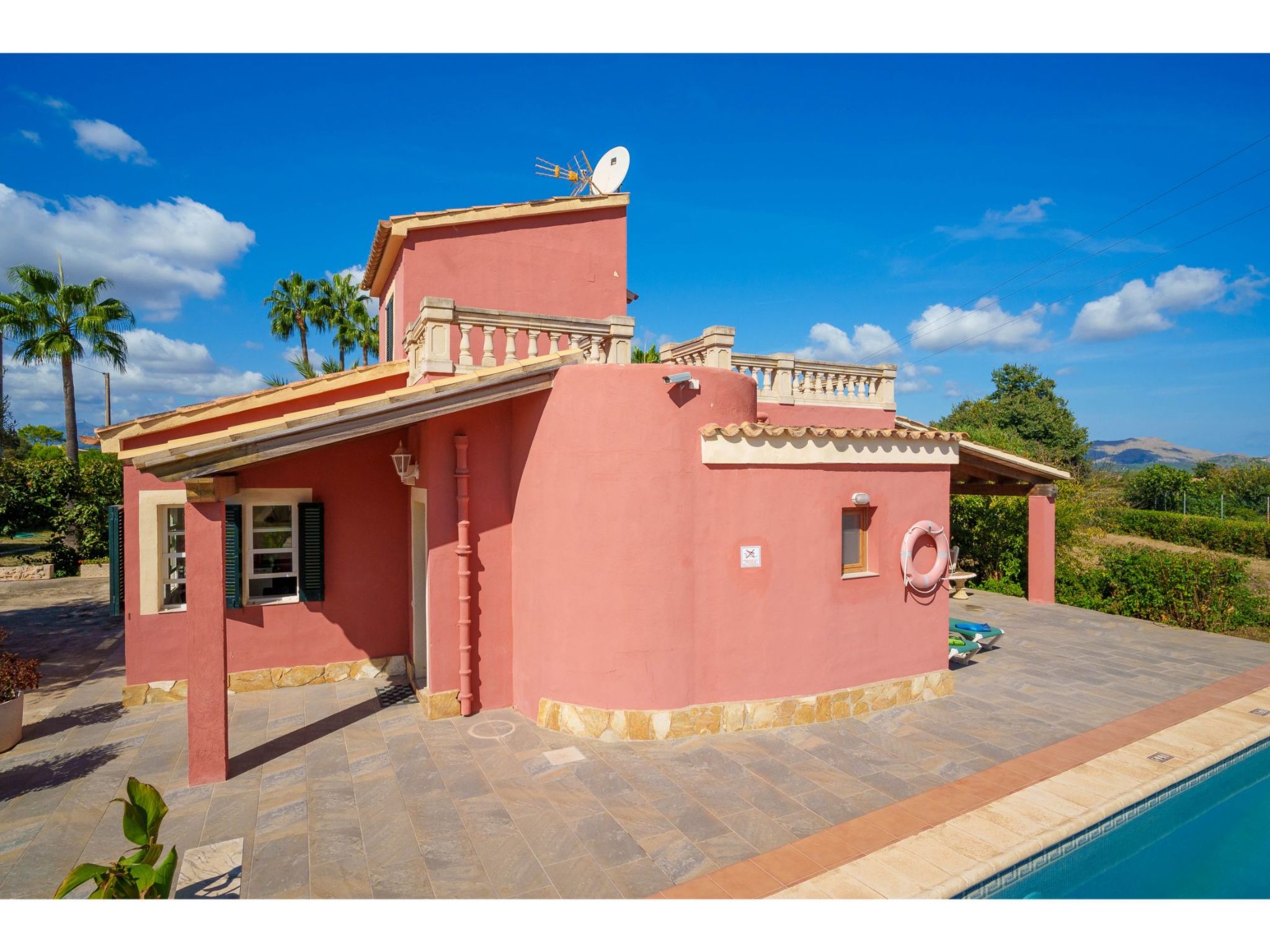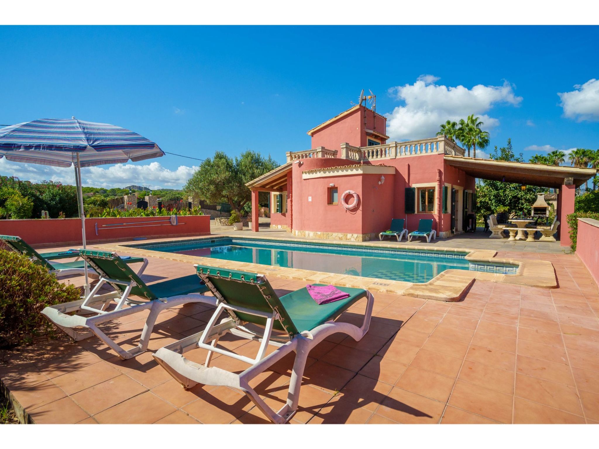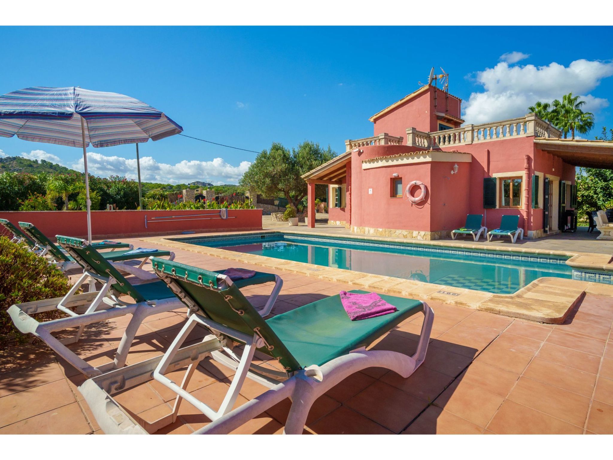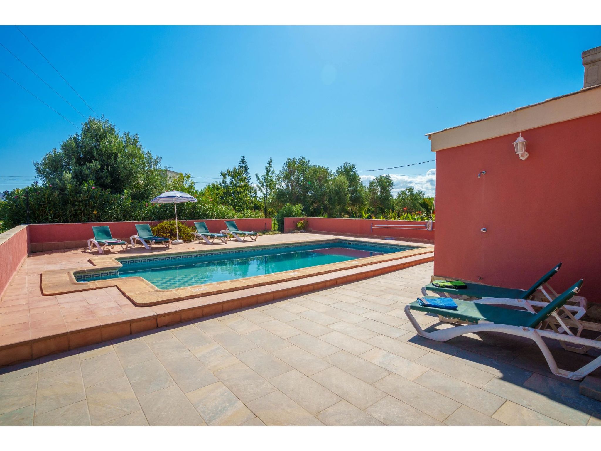 Belle maison individuelle "Sa Olivera". À 3 km du centre d'Alcúdia, à 23 km du centre d'Inca, à 47 km du centre de Cala Ratjada, à 4 km de la mer. A usage privé: terrain à l'état naturel 1'000 m2 (clôturé) avec pelouse et plantes, piscine (8 x 4 m, disponibilité saisonnière: 01.Jan. - 31.Dec.). Douche extérieure, place de parking sur le terrain. Magasins 4 km, supermarché 4 km, arrêt de bus 3 km, plage de sable "Alcúdia" 4 km. Veuillez noter: voiture recommandée.