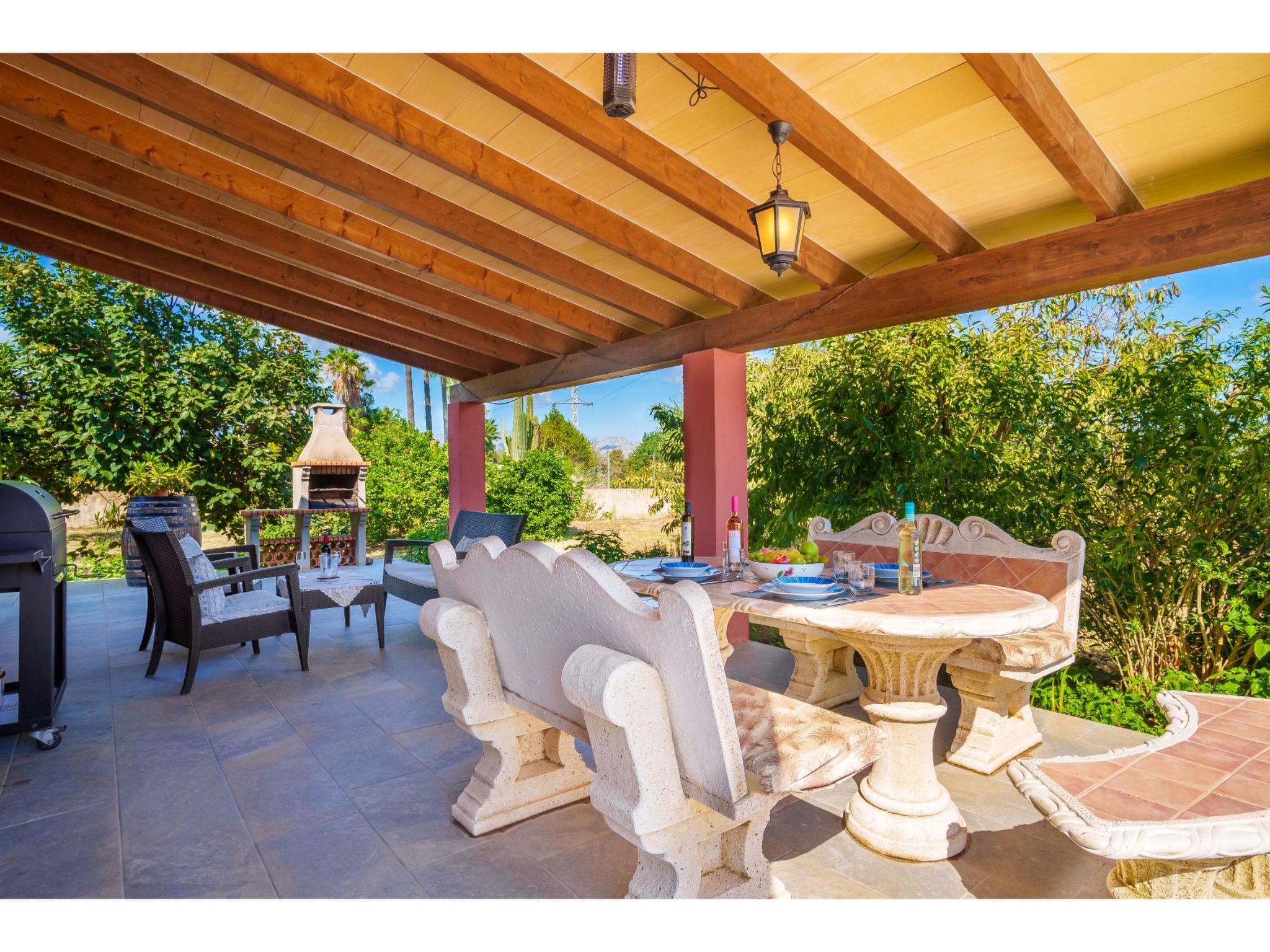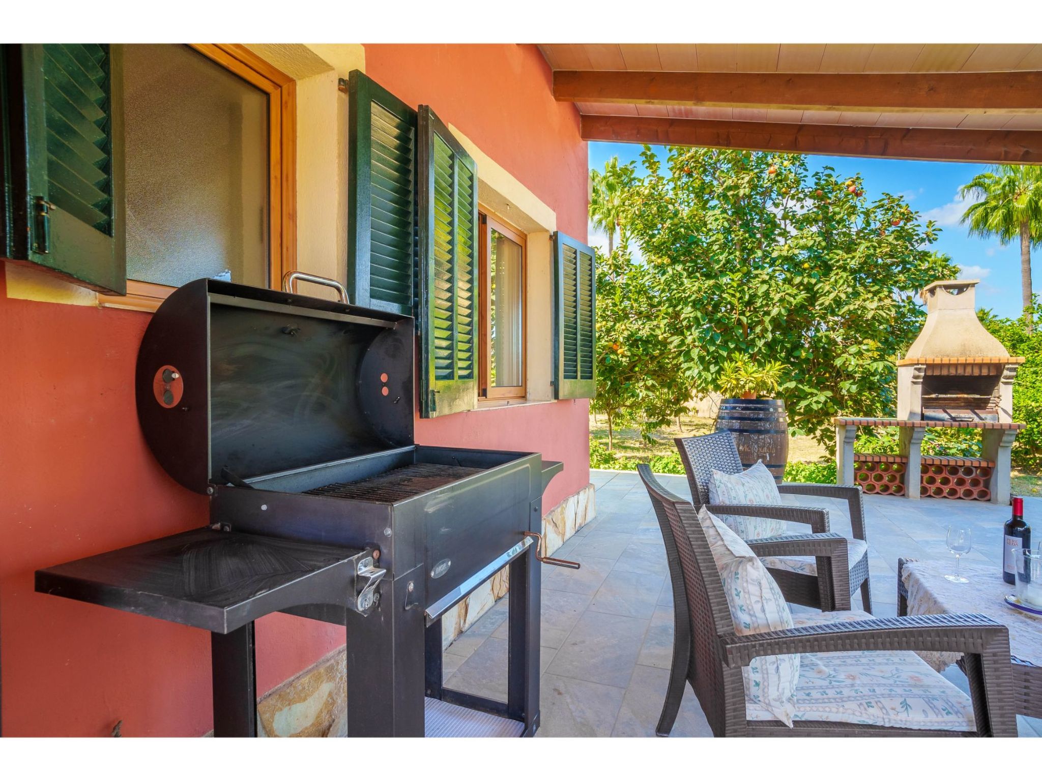 "Sa Olivera", maison 3 pièces 80 m2 sur 2 niveaux. Aménagement agréable: séjour/salle à manger avec table pour les repas, TV (satellite), Télévision numérique, DVD, chauffage électrique et air-conditionné. Sortie sur la terrasse. 1 chambre avec 2 lits, chauffage électrique et air-conditionné. 1 chambre avec 1 grand-lit (180 cm), chauffage électrique et air-conditionné. Cuisine (four, lave-vaisselle, 4 plaques vitrocéramiques, grille-pain, bouilloire électrique, micro-ondes, congélateur, cafetière électrique) avec table pour les repas. Bain/WC, douche/WC. Terrasse 20 m2, couverte, terrasse 15 m2. Meubles de terrasse, barbecue, chaises longues. Belle vue sur le jardin. A disposition: lave-linge, sèche-cheveux. Internet (Connexion WIFI, gratuit). Veuillez noter: maison non-fumeur. ET/2356 // Reg. Nr.: ESFCTU00000704300004275800000000000000000000ETV/23568