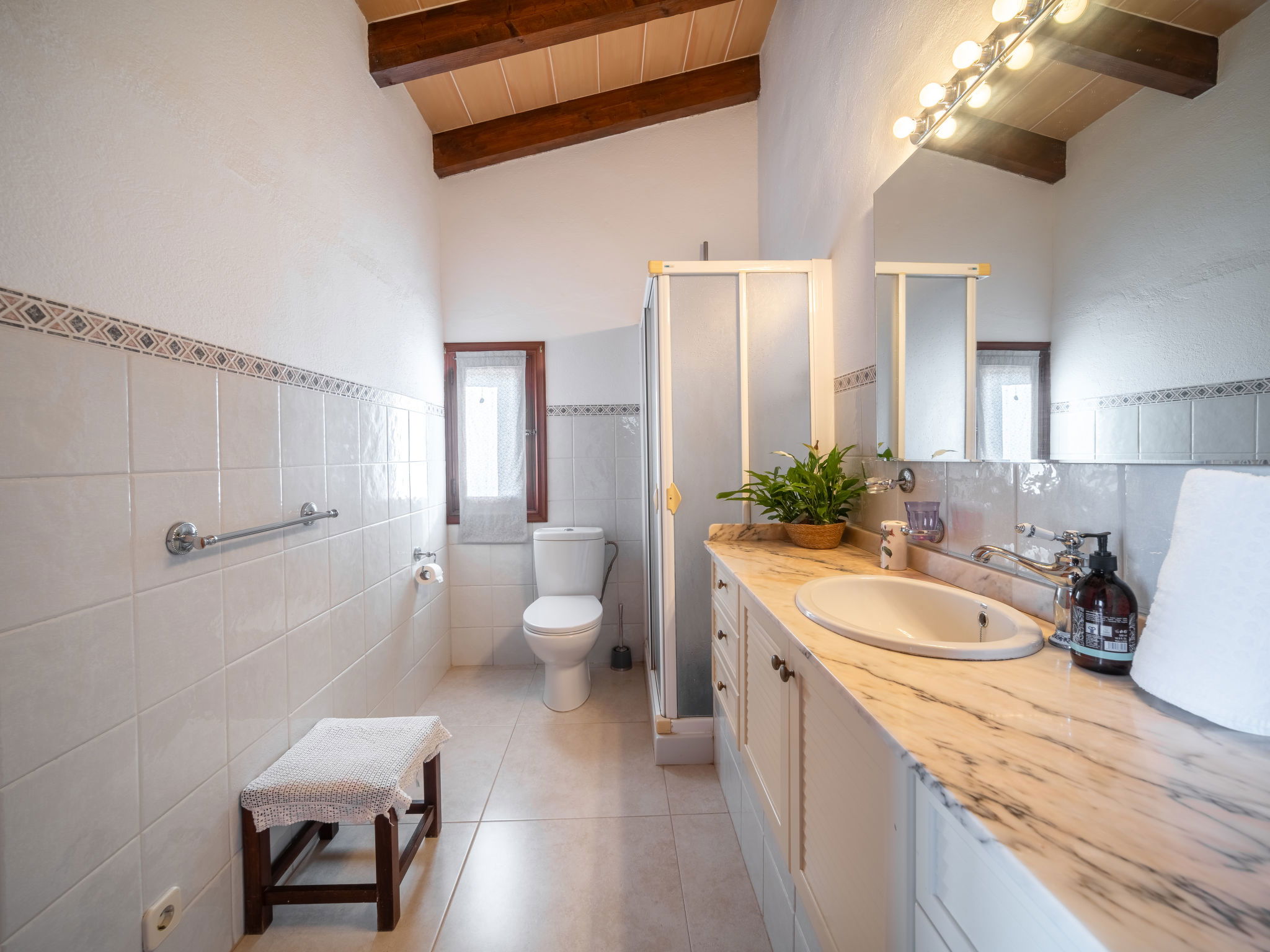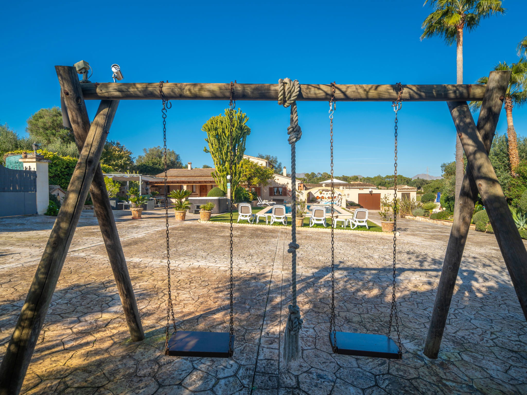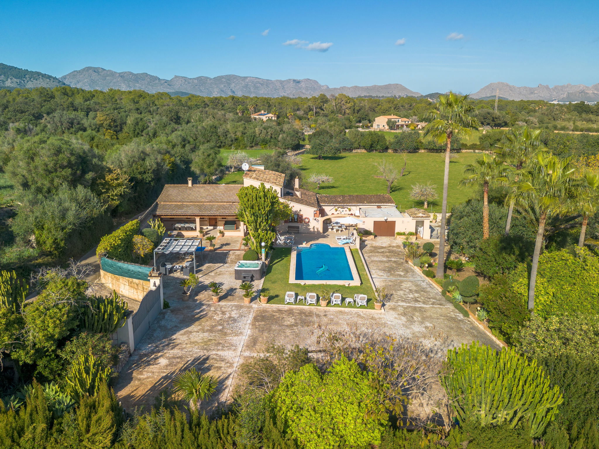 À 4 km de Alcúdia: Domaine rustique, confortable "Ca Na Guerrera", de 2 étages, renové en 2018, environné par les arbres et champs. En-dehors de la localité, à 4 km du centre d'Alcudia, situation tranquille, ensoleillée, à 7 km de la mer, dans une rue. A usage privé: terrain 13'000 m2 (clôturé) avec pelouse et plantes, verger (clôturé), jardin propice à la détente, piscine rectangulaire (9 x 4 m, disponibilité saisonnière: 20.Mar. - 07.Nov.). Douche/WC dans l'espace piscine, douche extérieure, bain à remous , jardinet (500 m2), pergola (15 m2), meubles de jardin, barbecue (balançoire). Infrastructures de la Maison: accès internet, Connexion WIFI, air-conditionné, lave-linge. Accès en voiture par un chemin étroite. Place de parking près de la maison sur le terrain. Magasins 6 km, magasin d'alimentation 6 km, restaurant 6 km, arrêt de bus "Alcudia" 6 km, gare ferroviaire 10 km, plage de sable "Bahia d'Alcudia" 7 km plage de graviers 8 km, plage de rochers 8 km. Port plaisance 6 km, marina 6 km, terrain de golf (18 trous) 6 km, tennis 8 km, centre équestre 5 km. Veuillez noter: voiture recommandée. Adapté(e) aux familles, indiqué pour séniors. Bien convenant à 7 adultes groupes de jeunes sur demande seulement. Déchargement et chargement des bagages à la location de vacances. Dans un enclos avec accès direct au jardin derrière la maison vivent 5 poneys.