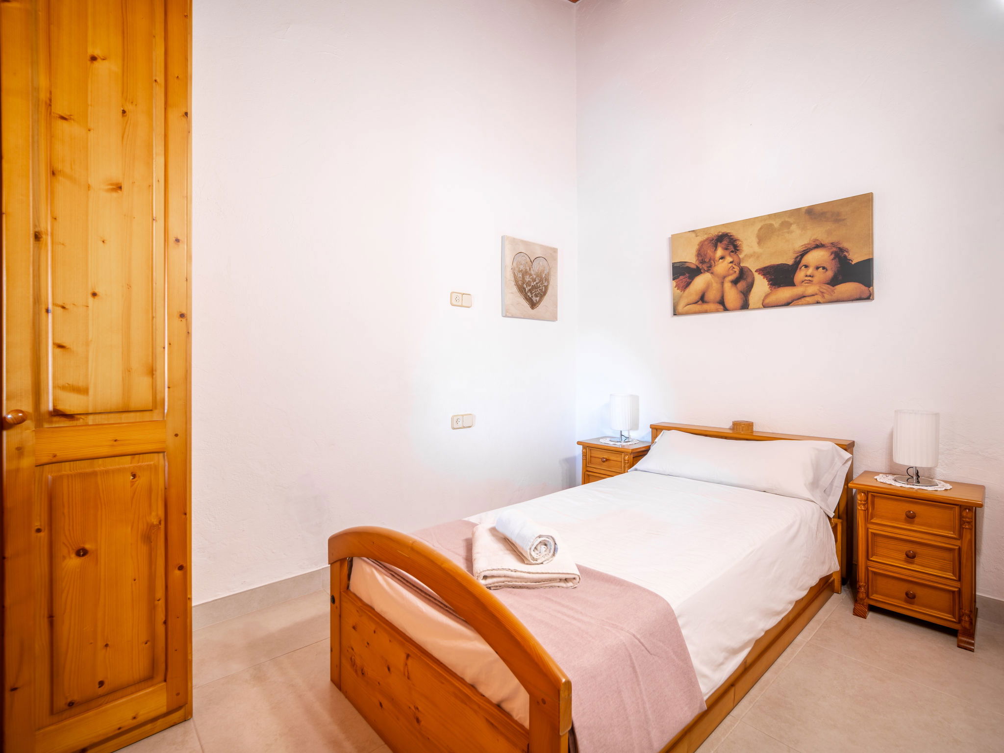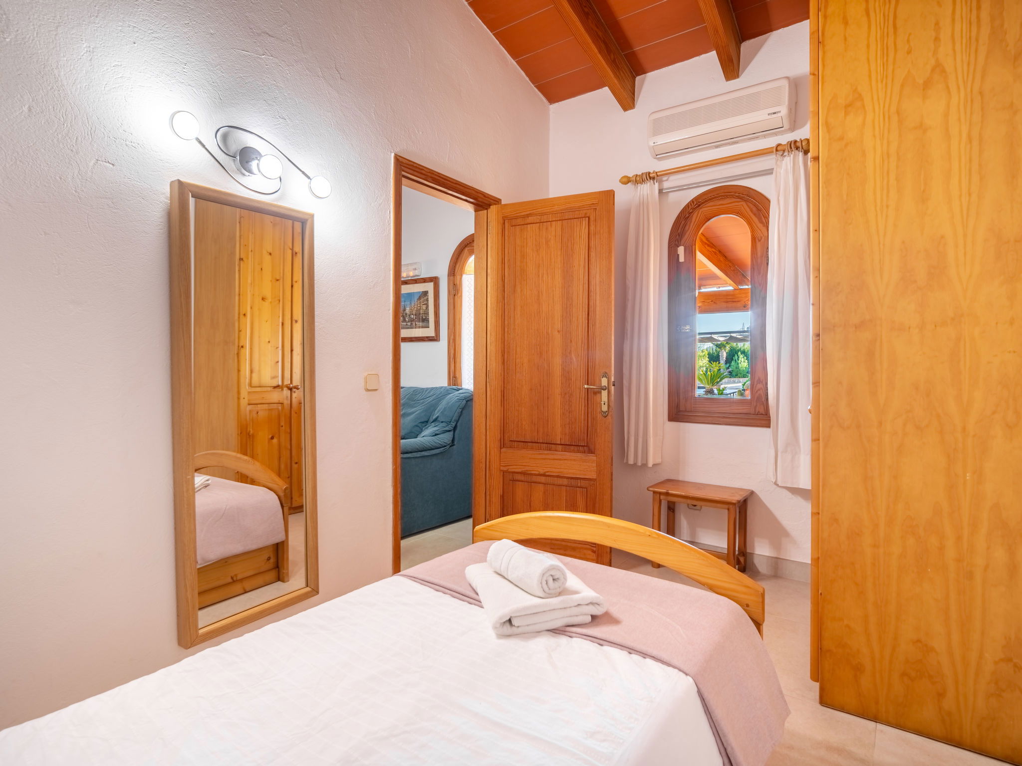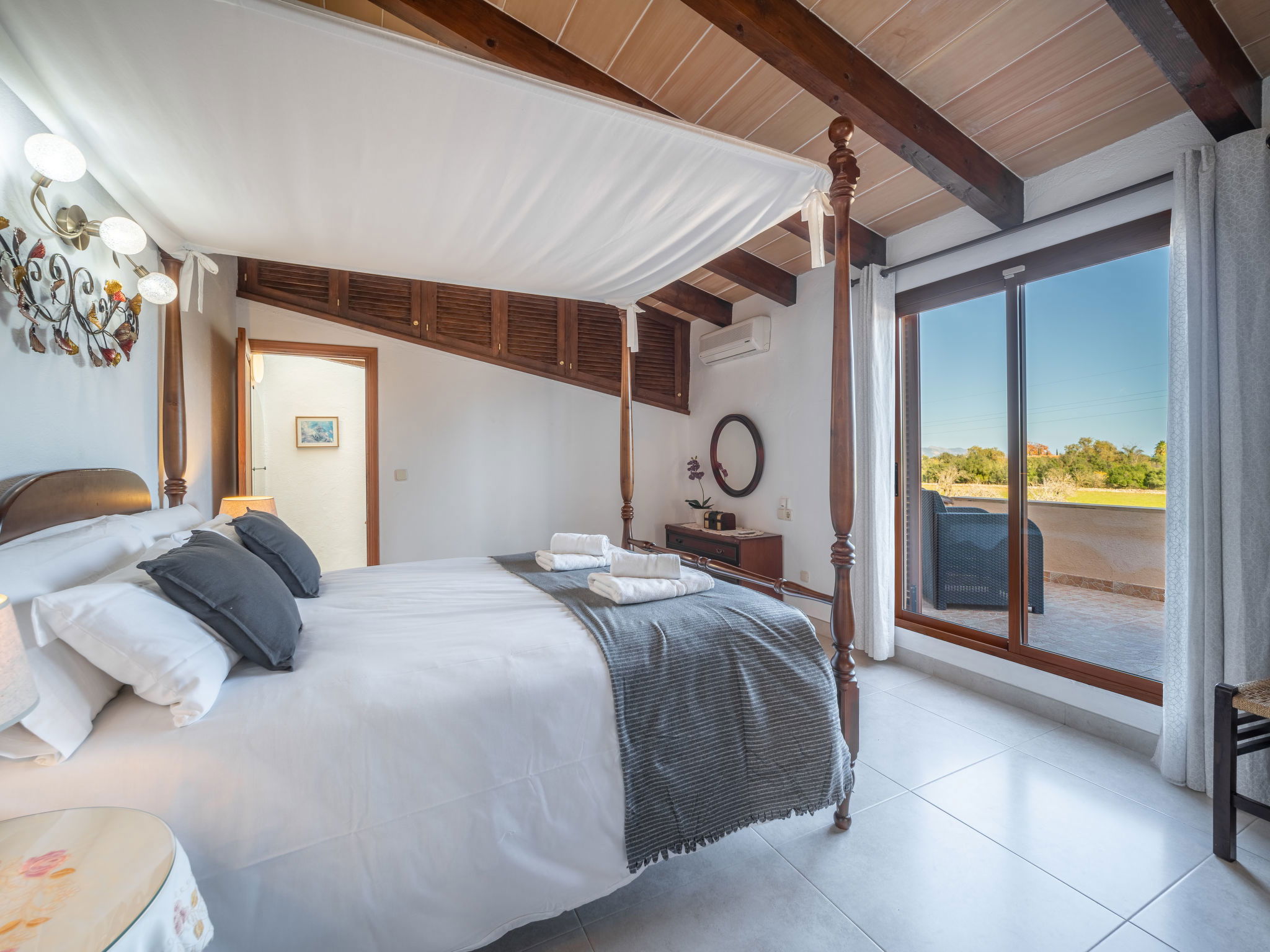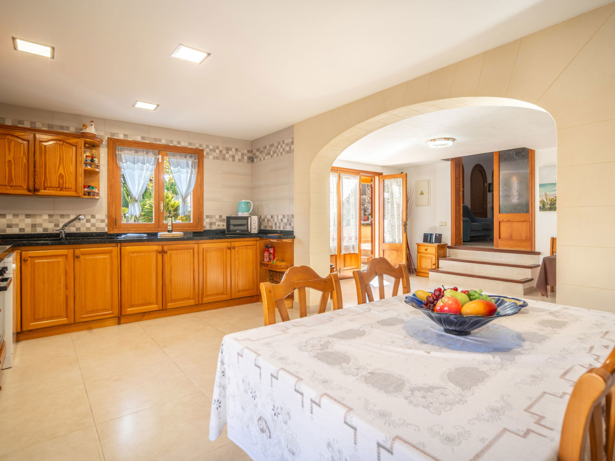 À 4 km de Alcúdia: Domaine rustique, confortable "Ca Na Guerrera", de 2 étages, renové en 2018, environné par les arbres et champs. En-dehors de la localité, à 4 km du centre d'Alcudia, situation tranquille, ensoleillée, à 7 km de la mer, dans une rue. A usage privé: terrain 13'000 m2 (clôturé) avec pelouse et plantes, verger (clôturé), jardin propice à la détente, piscine rectangulaire (9 x 4 m, disponibilité saisonnière: 20.Mar. - 07.Nov.). Douche/WC dans l'espace piscine, douche extérieure, bain à remous , jardinet (500 m2), pergola (15 m2), meubles de jardin, barbecue (balançoire). Infrastructures de la Maison: accès internet, Connexion WIFI, air-conditionné, lave-linge. Accès en voiture par un chemin étroite. Place de parking près de la maison sur le terrain. Magasins 6 km, magasin d'alimentation 6 km, restaurant 6 km, arrêt de bus "Alcudia" 6 km, gare ferroviaire 10 km, plage de sable "Bahia d'Alcudia" 7 km plage de graviers 8 km, plage de rochers 8 km. Port plaisance 6 km, marina 6 km, terrain de golf (18 trous) 6 km, tennis 8 km, centre équestre 5 km. Veuillez noter: voiture recommandée. Adapté(e) aux familles, indiqué pour séniors. Bien convenant à 7 adultes groupes de jeunes sur demande seulement. Déchargement et chargement des bagages à la location de vacances. Dans un enclos avec accès direct au jardin derrière la maison vivent 5 poneys.