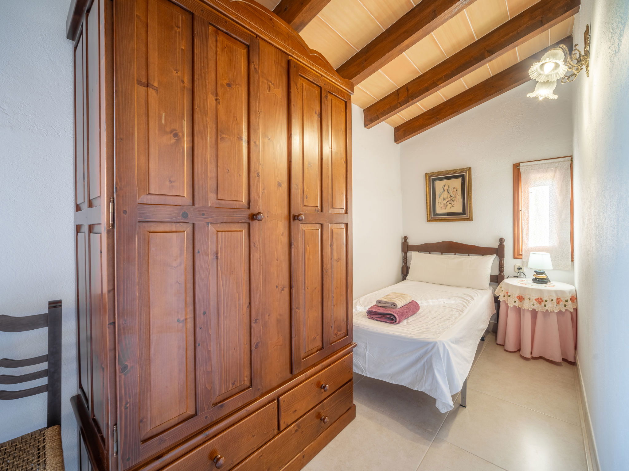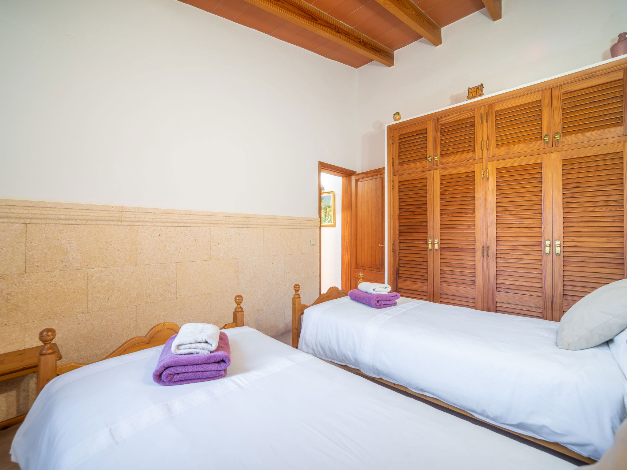 "Ca Na Guerrera", villa 6 pièces 180 m2 sur 2 niveaux. Aménagement rustique et plaisant: séjour avec cheminée, TV (satellite), écran plat, radio et DVD. Sortie sur le jardinet, sur la piscine. 1 chambre double avec 2 lits (90 cm, longueur 190 cm), air-conditionné et chauffage à air chaud. 1 chambre double avec 1 grand-lit (150 cm, longueur 200 cm), air-conditionné et chauffage à air chaud. 1 chambre avec 1 lit gigogne, air-conditionné et chauffage à air chaud. Cuisine (four, lave-vaisselle, 4 plaques vitrocéramiques, micro-ondes, congélateur, cafetière électrique) avec table pour les repas. Sortie sur le jardinet, sur la piscine. Douche/bidet/WC. À l'étage supérieur: 1 grande chambre double avec 1 grand-lit (150 cm, longueur 200 cm), douche/WC, air-conditionné et chauffage à air chaud. Sortie sur le balcon. Sol en pierres naturelles. Mobilier confortable de style campagnard. Terrasse, jardinet, pelouse. Meubles de terrasse, mobilier de balcon, barbecue, chaises longues (8), loggia, place pour s'asseoir. Vue sur les montagnes. A disposition: lave-linge, coffre-fort, fer à repasser, chaise haute pour enfant, lit bébé jusqu'à 2 ans, sèche-cheveux. Internet (Connexion WIFI, gratuit). Près de la maison. Adapté(e) aux familles. ETV/553 // Reg. Nr.: ESFCTU000007043000034869000000000000000000000ETV/5537