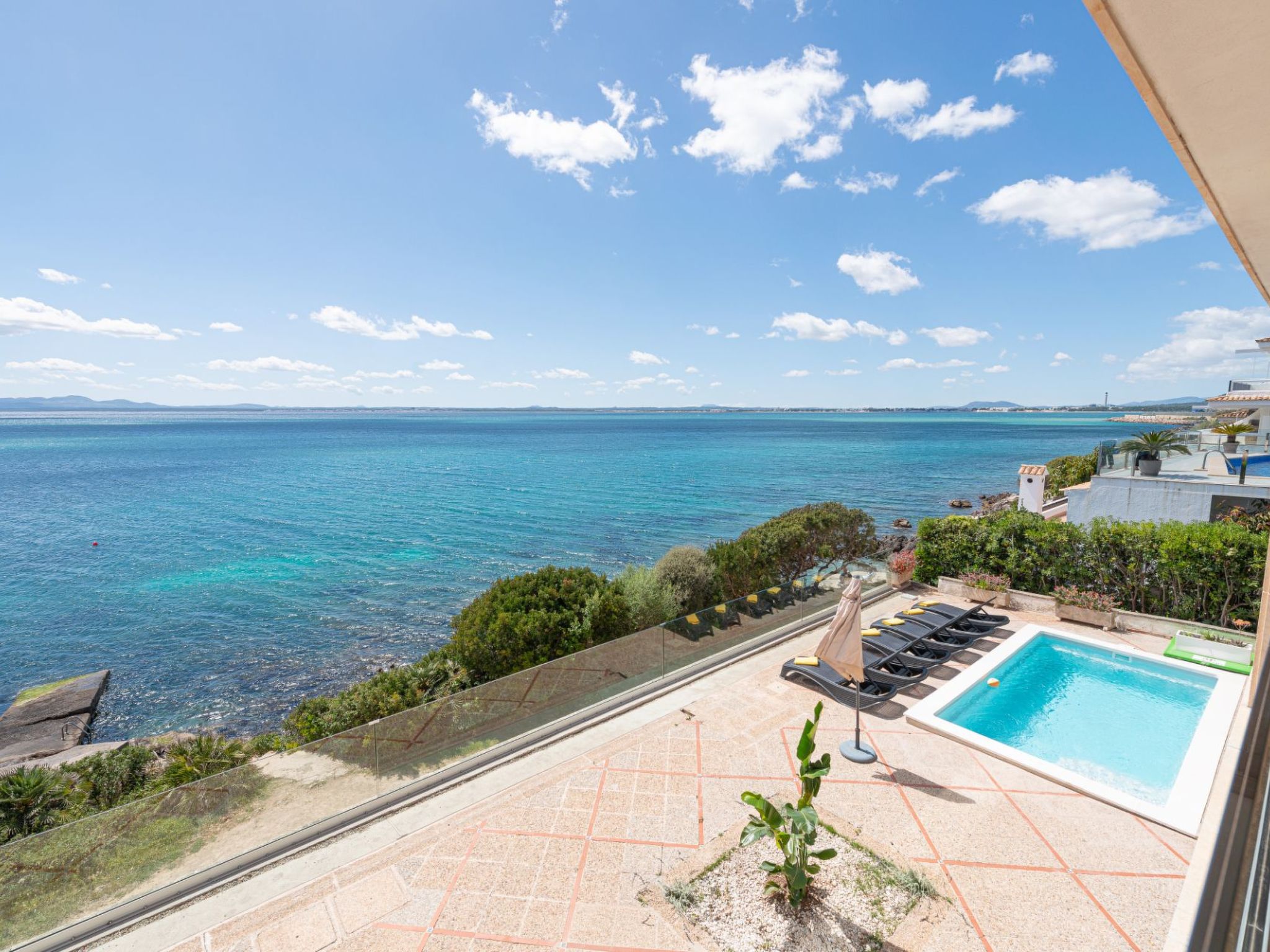 Venture beyond the villa to explore the rich offerings of Alcanada and its environs. The proximity to Puerto Alcudia's famed sandy beaches, coupled with easy access to local supermarkets, boutiques, and an array of restaurants, ensures your vacation is as laid-back or as adventurous as you desire. The locale's elegance is matched by its natural beauty and cultural offerings, promising a stay that's as enriching as it is restful.
