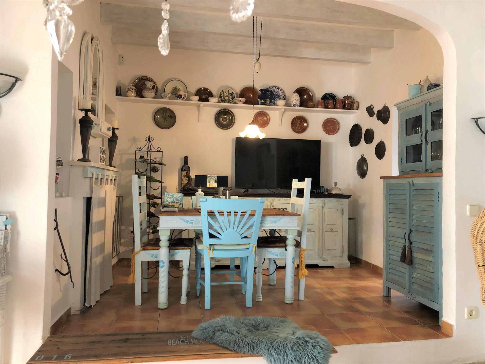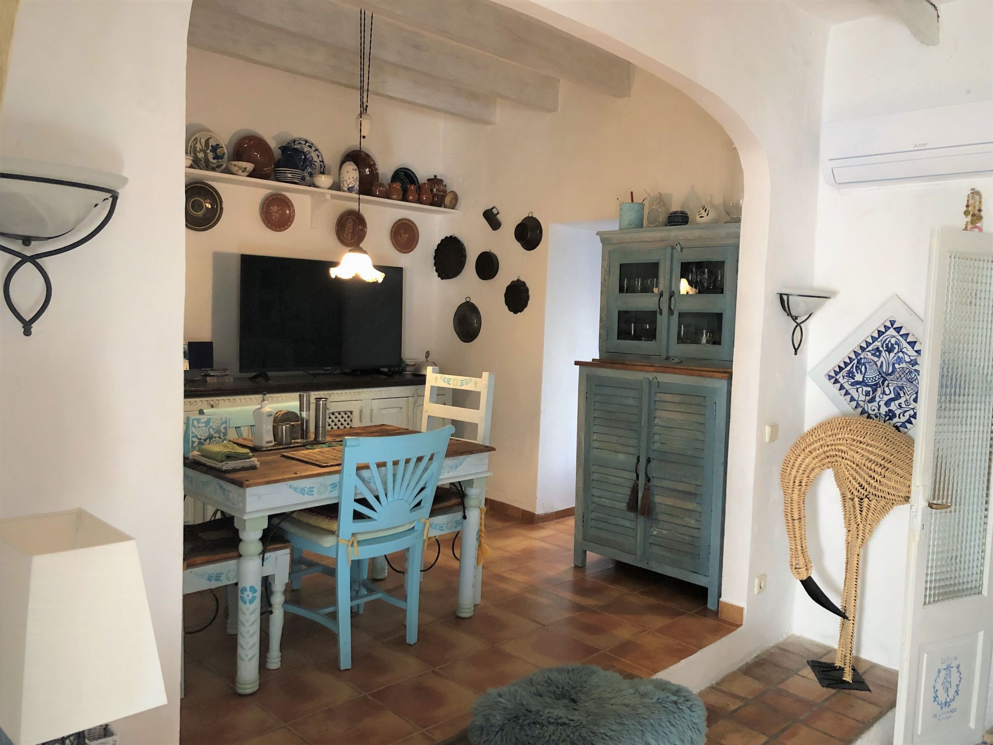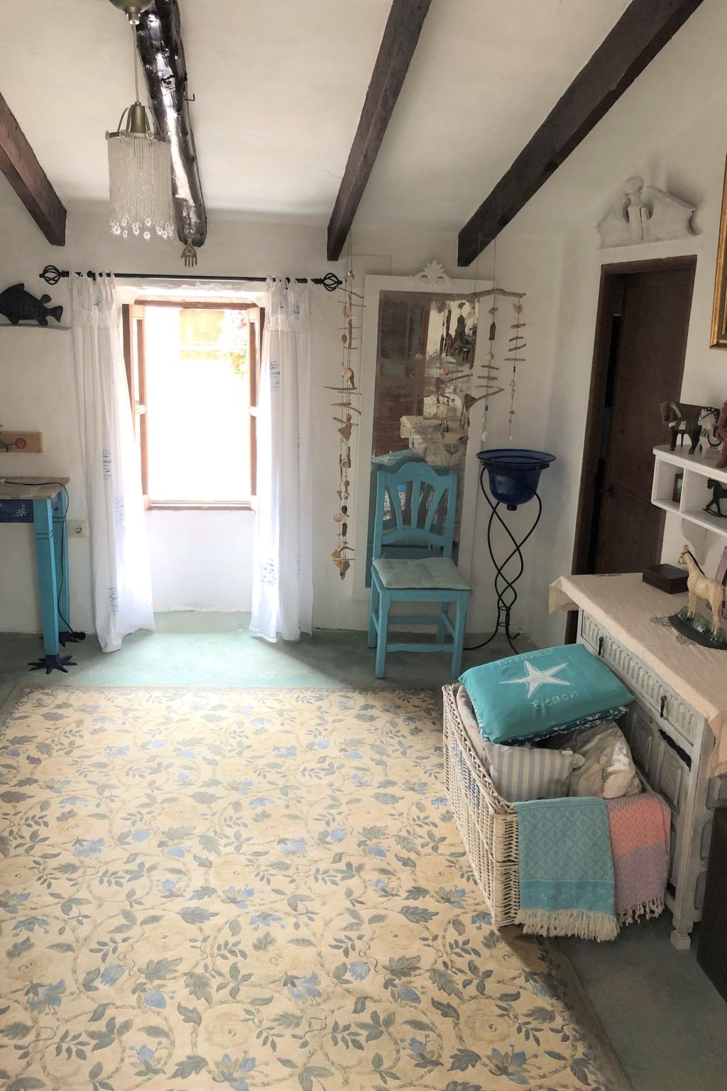 The approximately 120m ² house is lovingly and individually decorated. The ground floor leads to a large entrance area. On the ground floor also a dining and sitting area with satellite TV invites you for a social gathering. The rustic kitchen is equipped with all major kitchen utensils. In addition to a gas stove are also a refrigerator, a toaster, a coffee machine u.v.m. to be found. Also on the ground floor is a separate bedroom with a double bed. Furthermore, the ground floor is the bathroom with shower and toilet and a business patio with washer and dryer. On the floor you will find a large light-flooded and air-conditioned double bedroom with terrace access. Find here a perfect refuge for a romantic Majorca holiday for couples or for a small family.