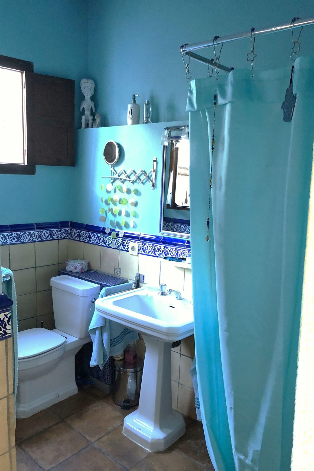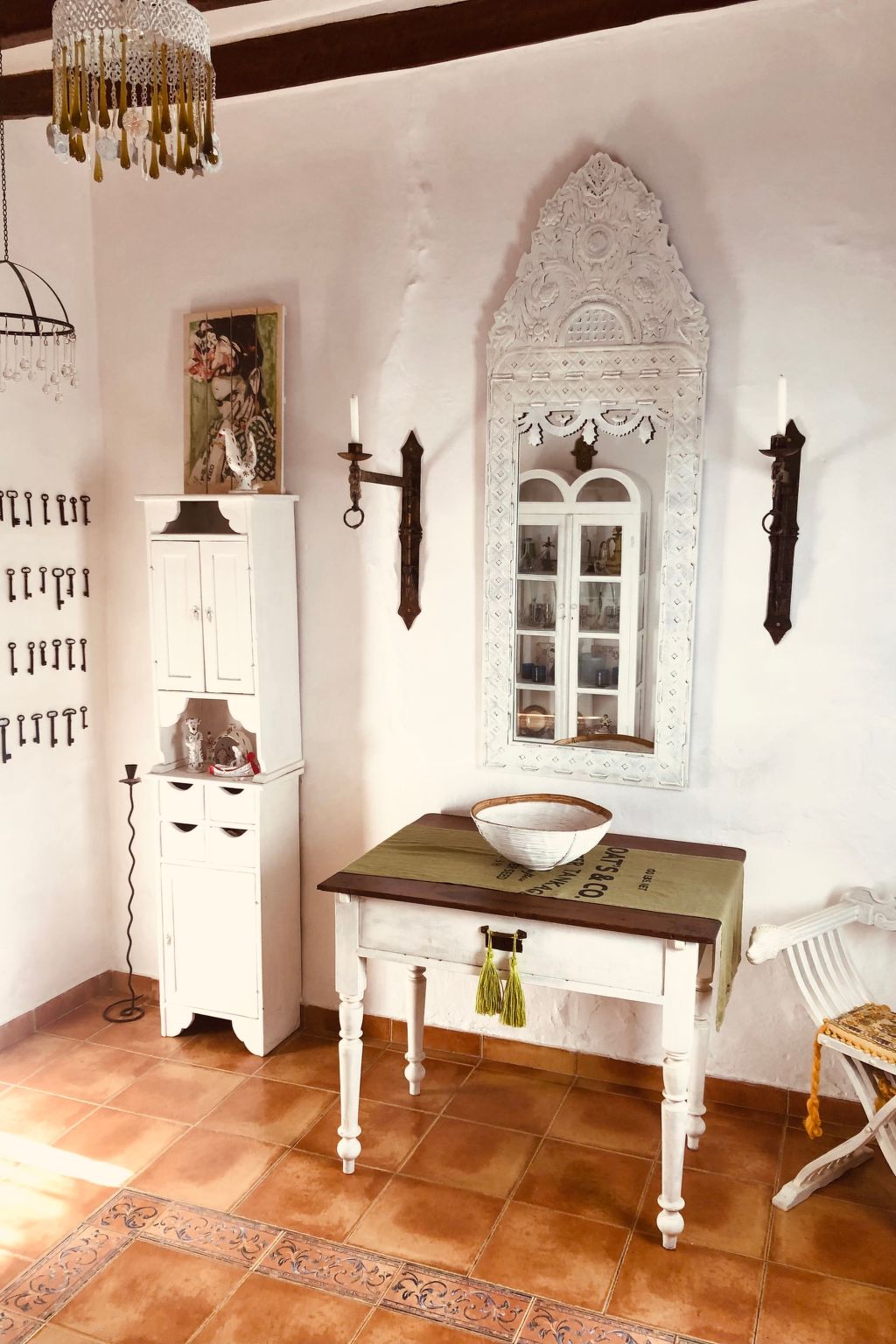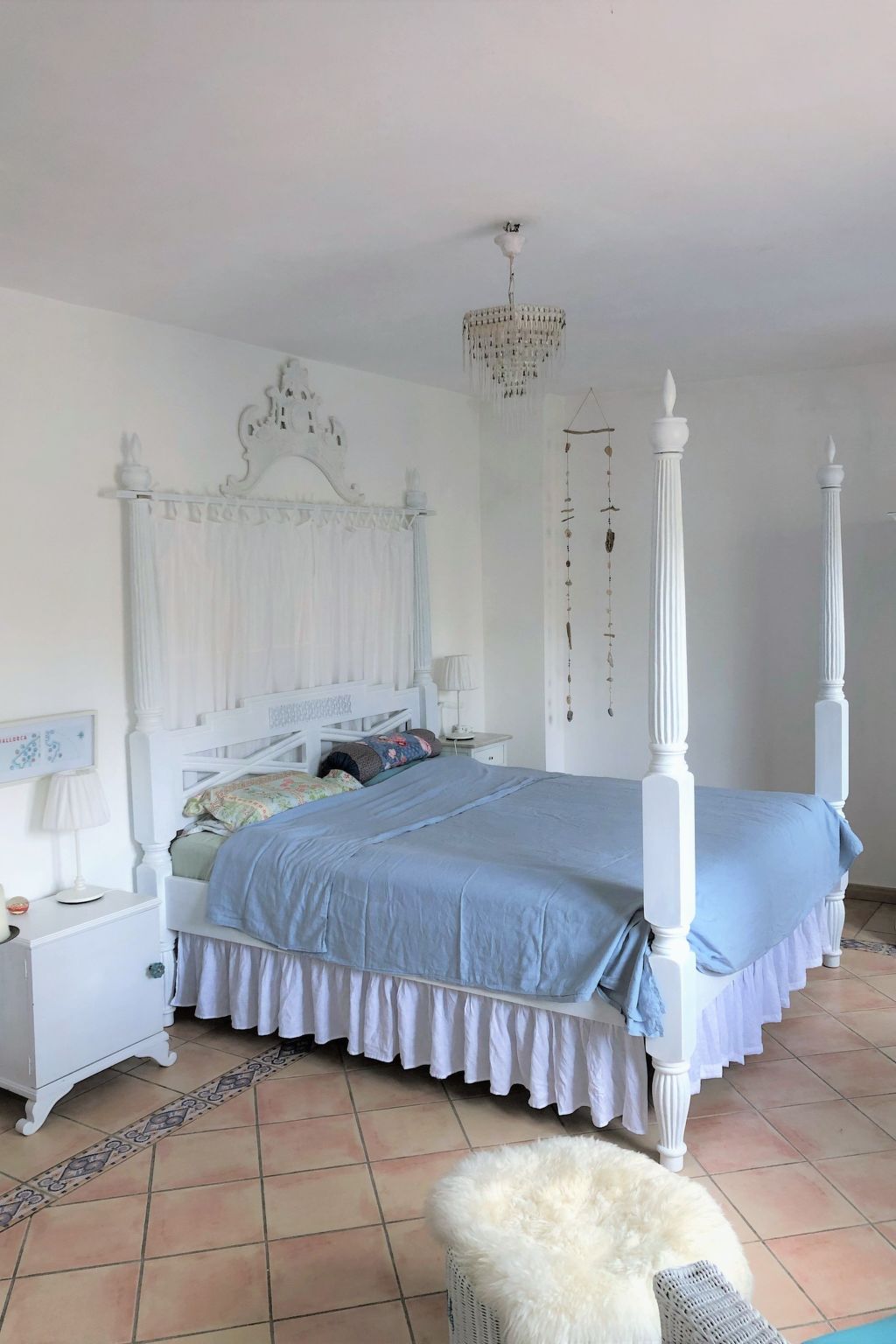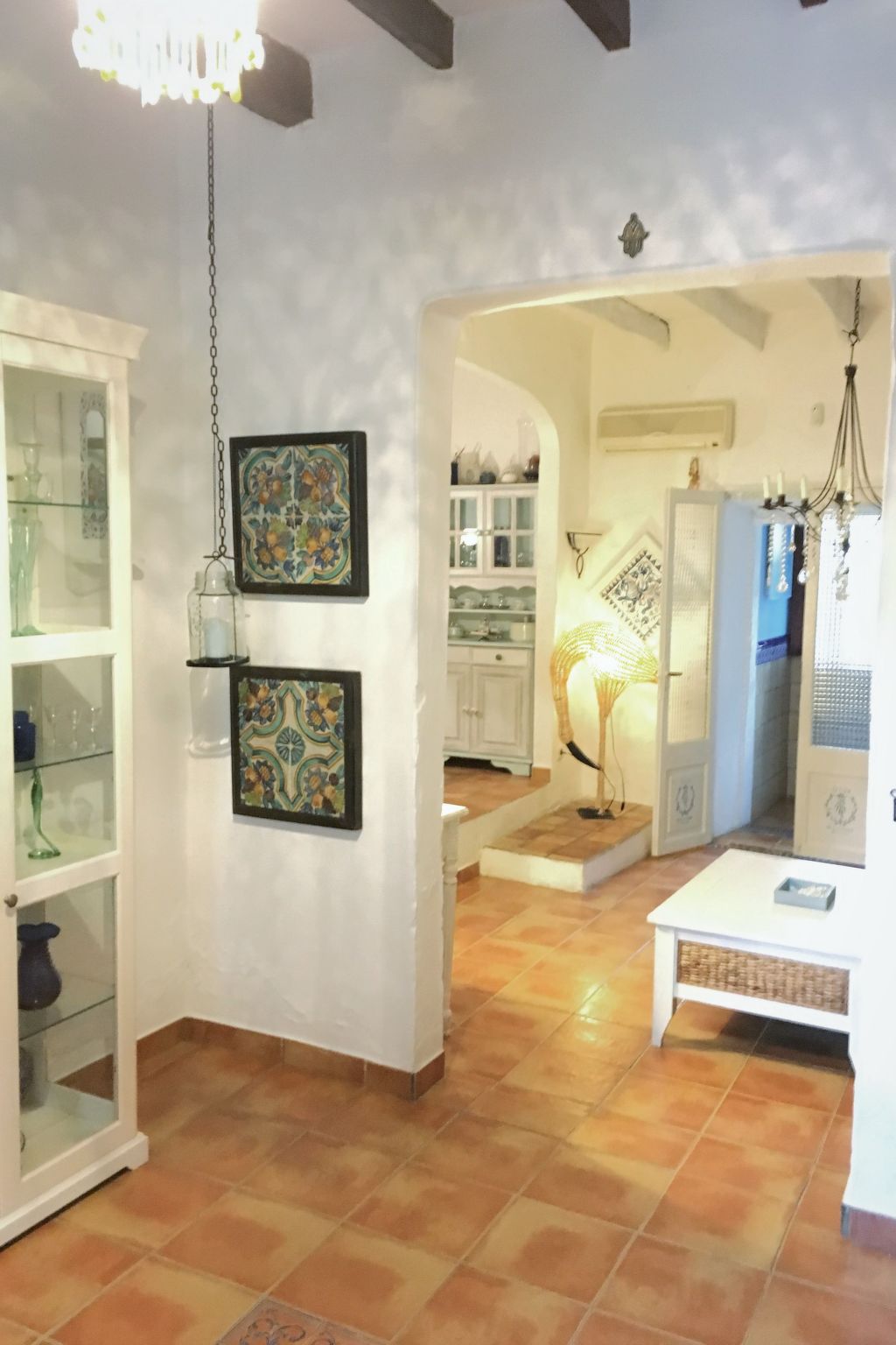 The approximately 120m ² house is lovingly and individually decorated. The ground floor leads to a large entrance area. On the ground floor also a dining and sitting area with satellite TV invites you for a social gathering. The rustic kitchen is equipped with all major kitchen utensils. In addition to a gas stove are also a refrigerator, a toaster, a coffee machine u.v.m. to be found. Also on the ground floor is a separate bedroom with a double bed. Furthermore, the ground floor is the bathroom with shower and toilet and a business patio with washer and dryer. On the floor you will find a large light-flooded and air-conditioned double bedroom with terrace access. Find here a perfect refuge for a romantic Majorca holiday for couples or for a small family.