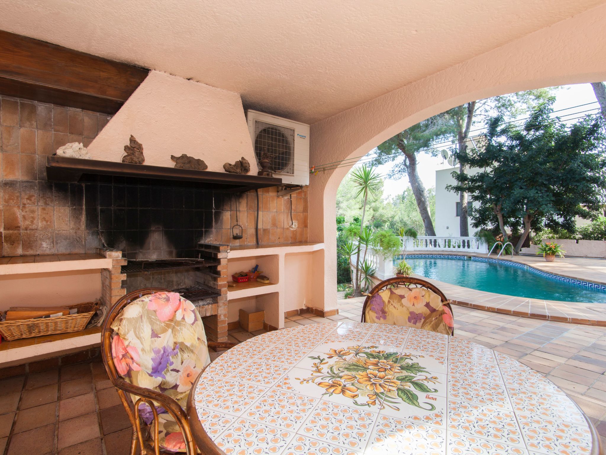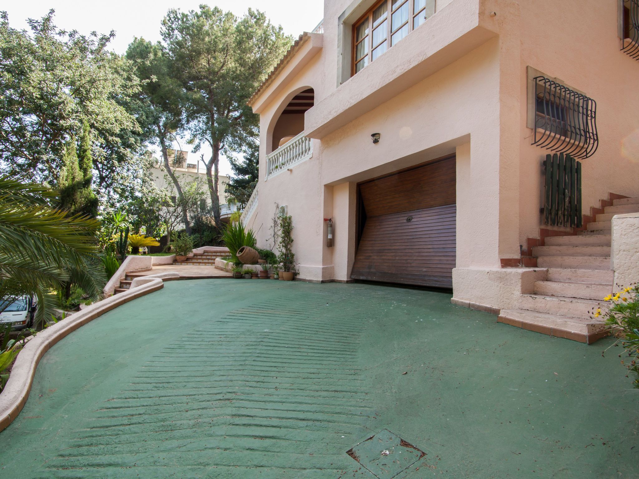 Swimming pool of 8x4m surface and 1,5-2m deep with sun terrace. There is also a garden.