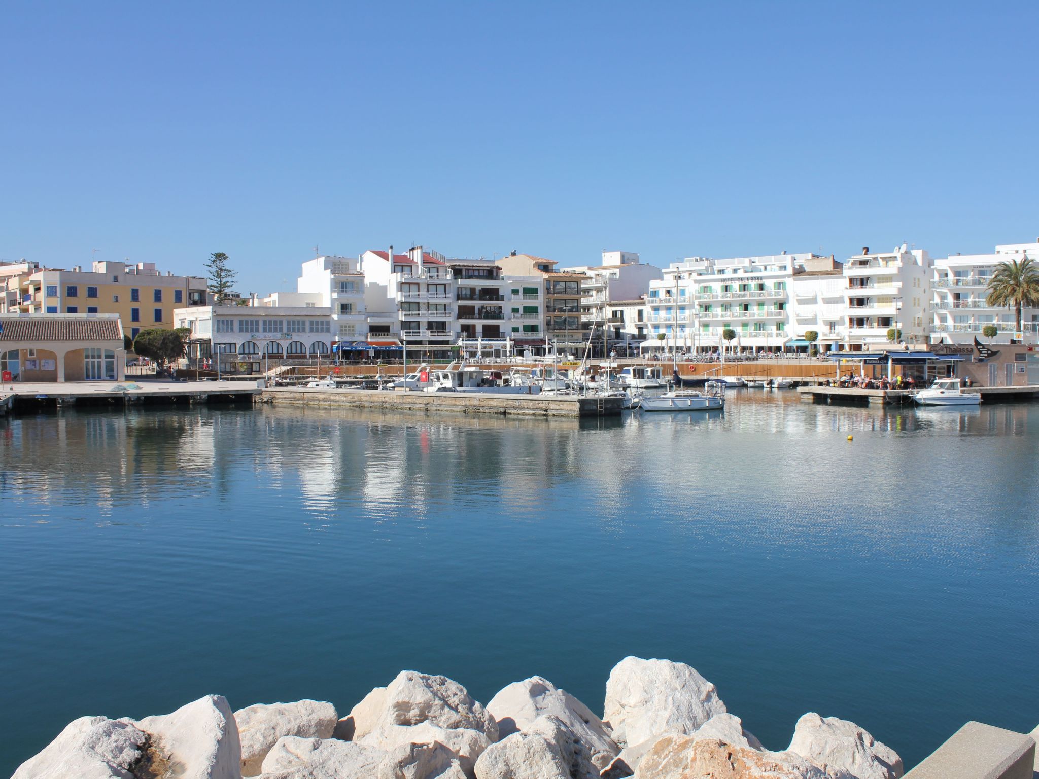 This house is located 200 metres from the beautiful fishing harbour of Cala Bona. Nearby there are two 18-hole golf courses, Son Servera Golf at 3 km and Pula Golf at 6 km.