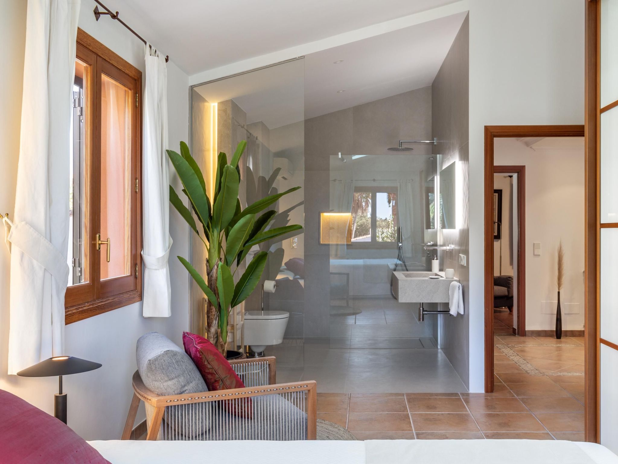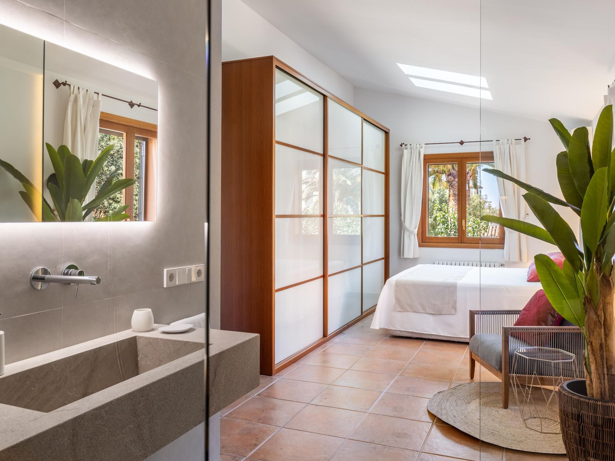 The exterior of the house is, quite simply, spectacular. Surrounded by palm trees and a large lawned garden, it provides the ideal setting to relax and enjoy the Mediterranean climate. The presence of a terrace and a balcony add to the charm of the place, being ideal spaces for sharing meals outdoors, reading a good book or simply admiring the tranquillity of the sea. The sea, located just 10 metres away, is accessible for a cool dip in the sea or a long walk along the shore at any time of day.