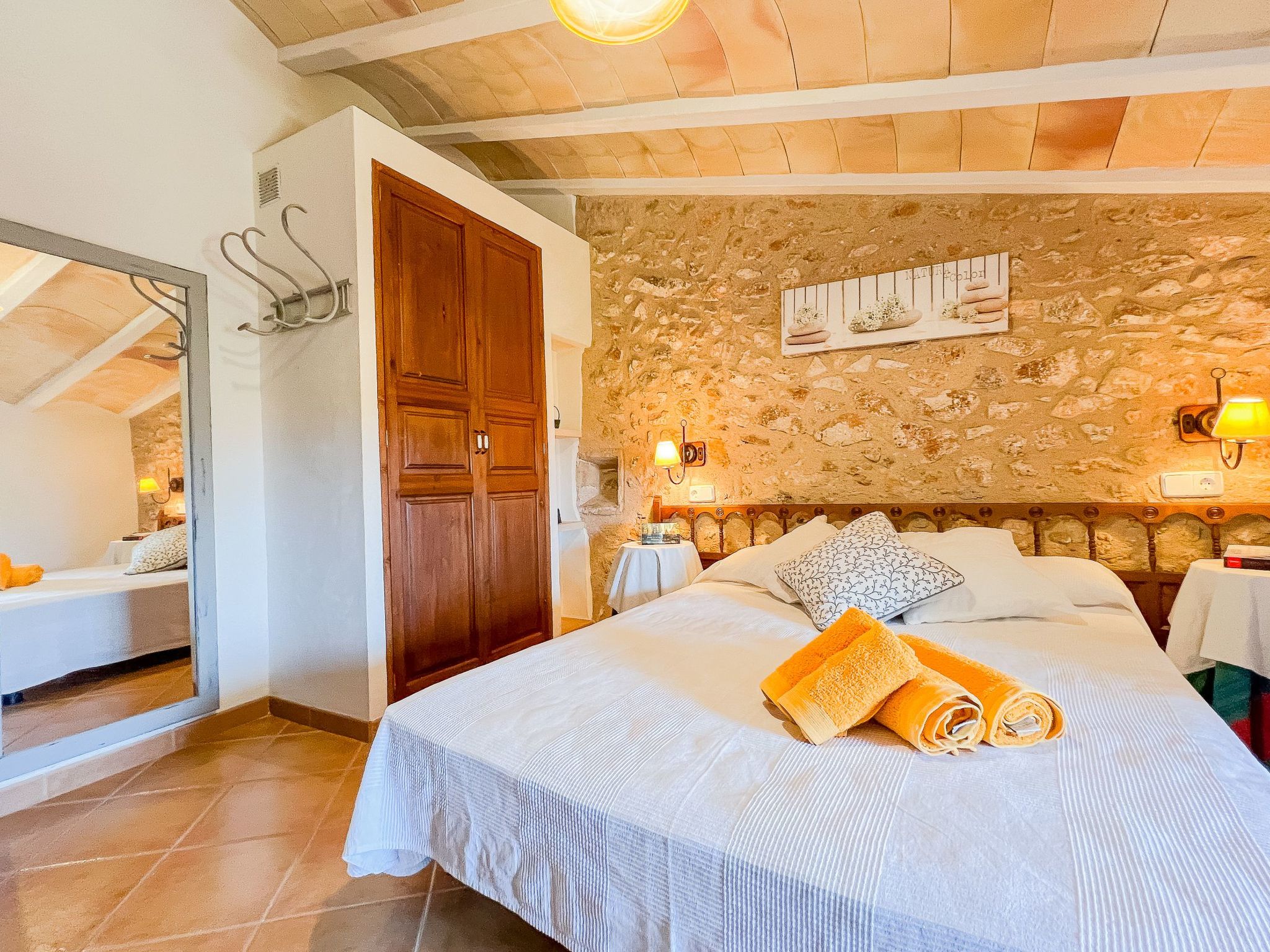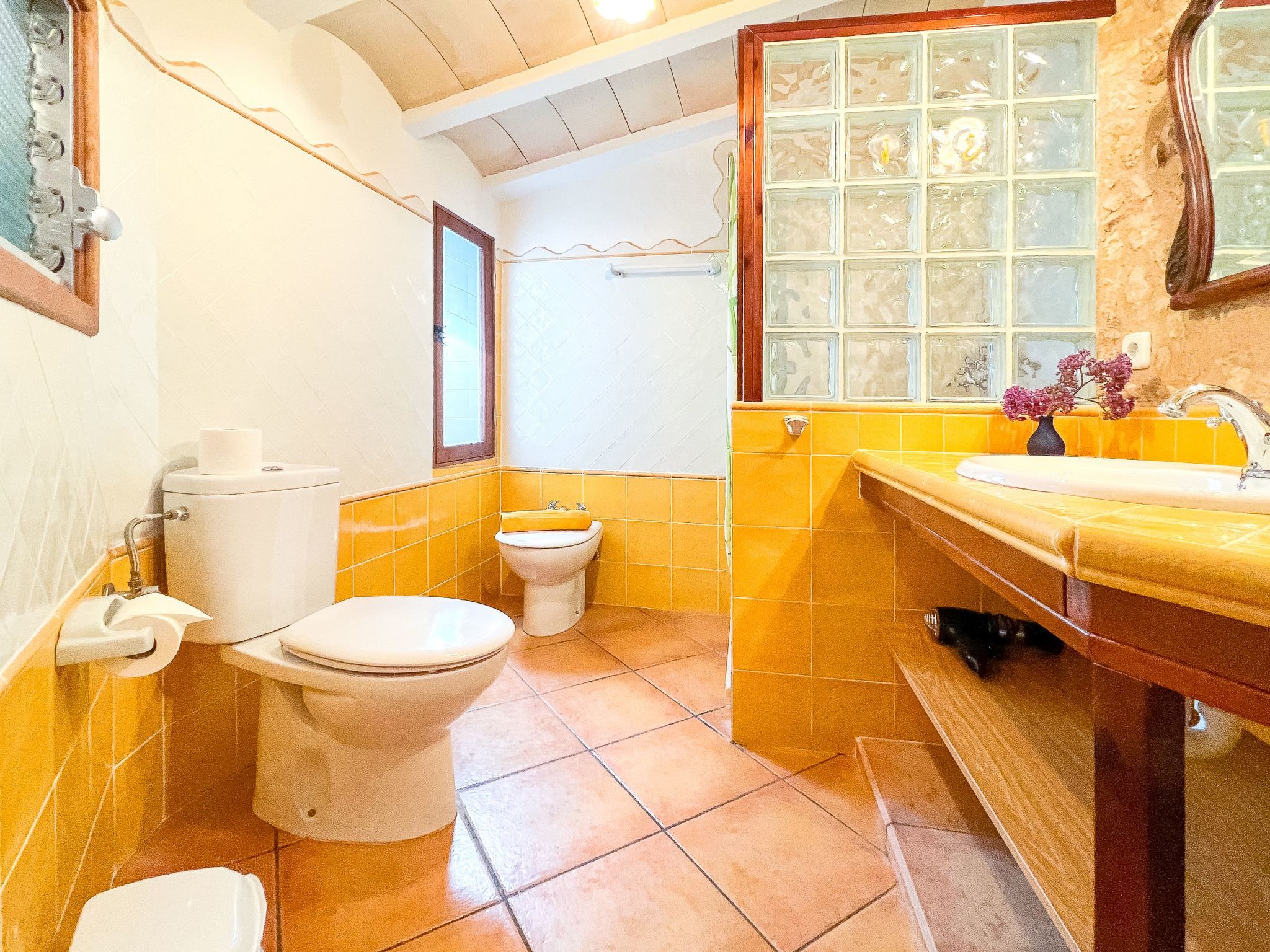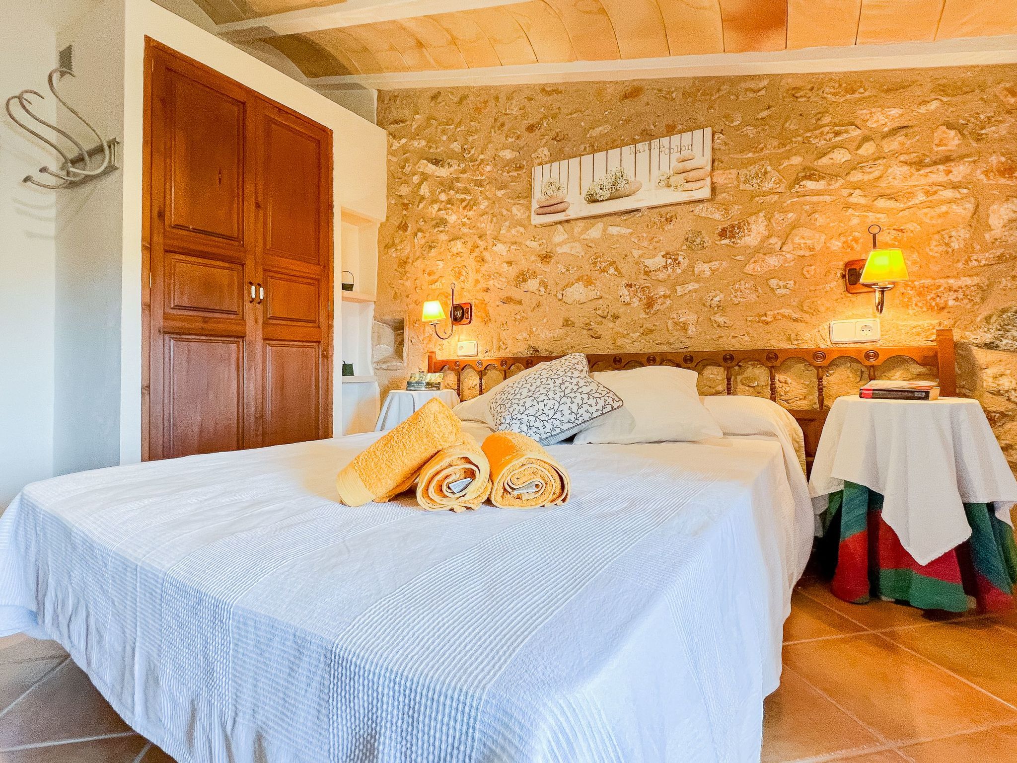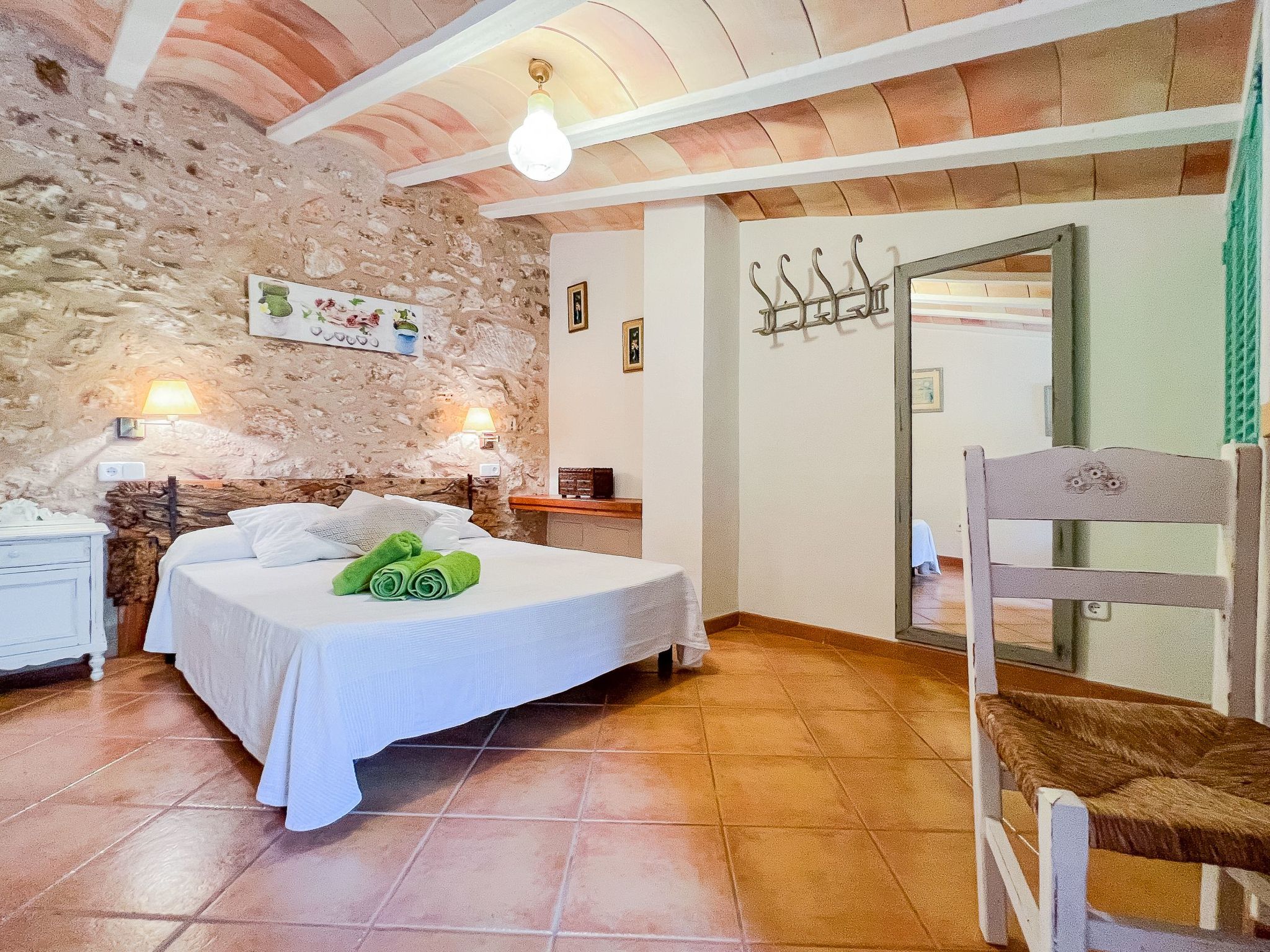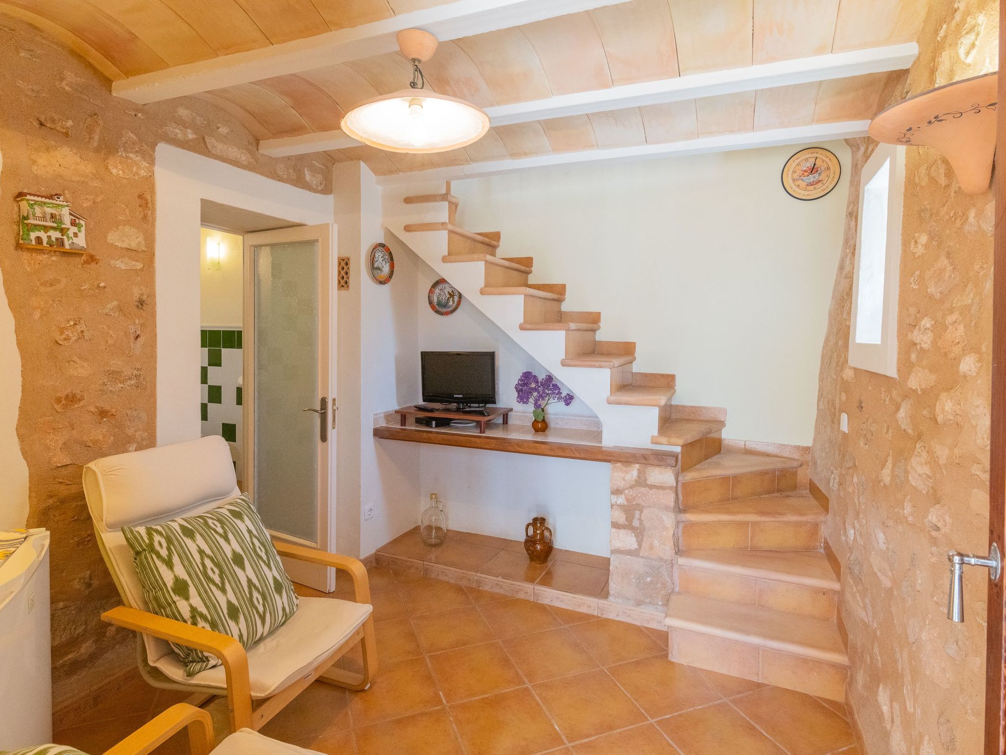 Upper floor: Here you will find a shower/toilet, a toilet with washing machine and iron, and two bedrooms (two beds 150x190) with radiators. The pretty little village of S'Horta is located in the southeast of Majorca, about 1,5 km from Calonge, about 4 km from Porto Colom and about 5 km from Cala D'Or.
