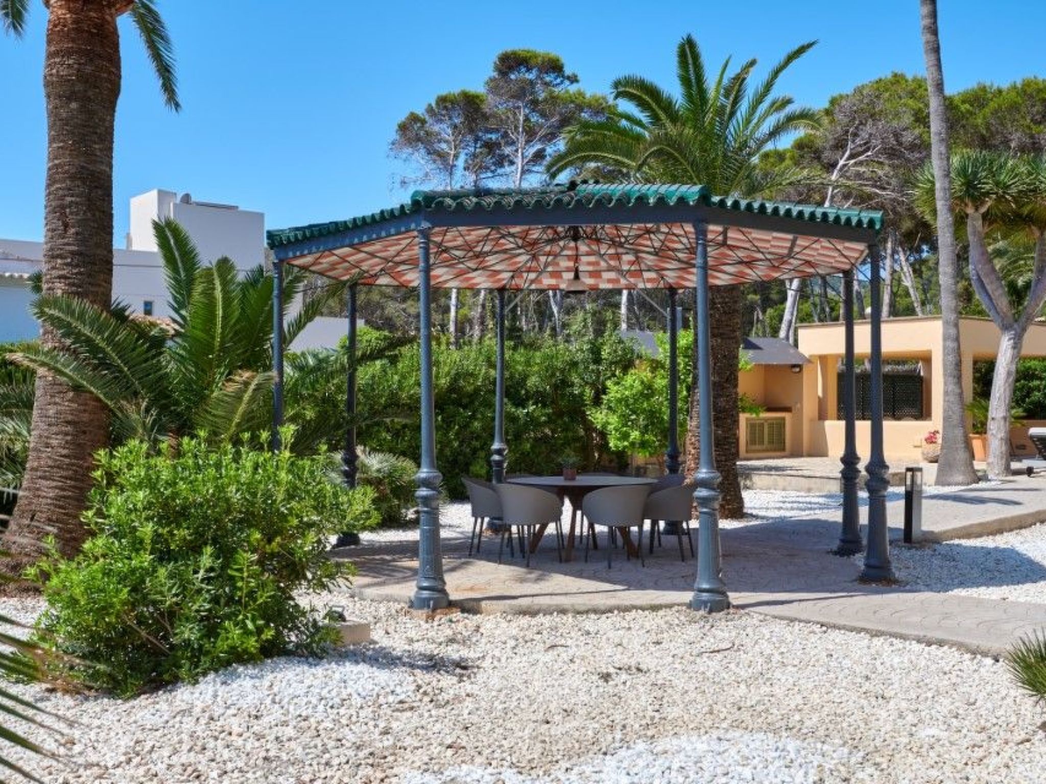 The location of Villa al Mar Orient is another highlight that will make your stay unforgettable. Just a stone's throw from the sea and the sandy Son Moll beach, the surrounding area offers a blend of natural beauty and practical proximity to local amenities. The nearest village centre with its charming cafés and shops is just 600 metres away, while the nearest grocery store can be found within 800 metres. Whether you prefer long walks on the beach or want to explore the local culture, you will find everything your heart desires here.