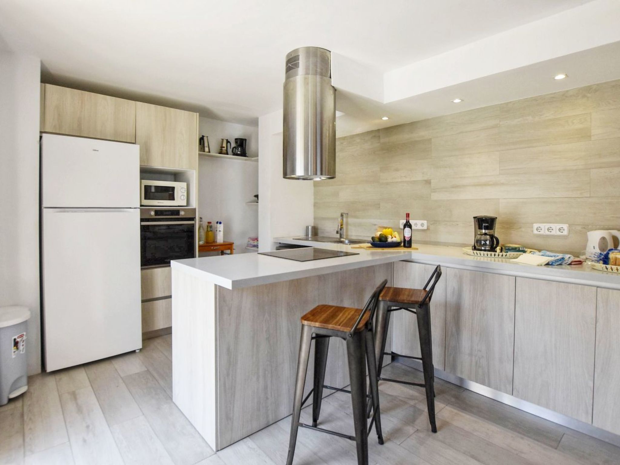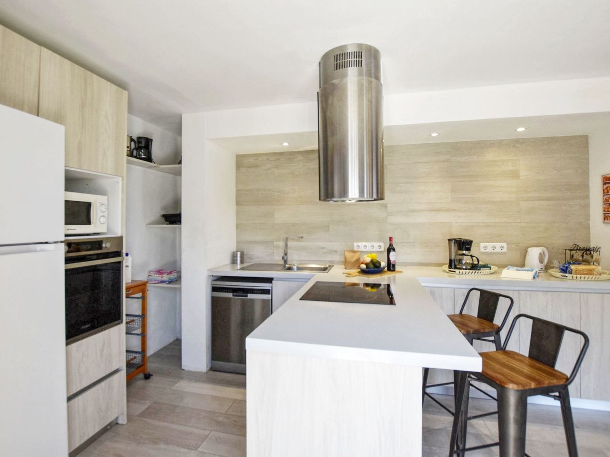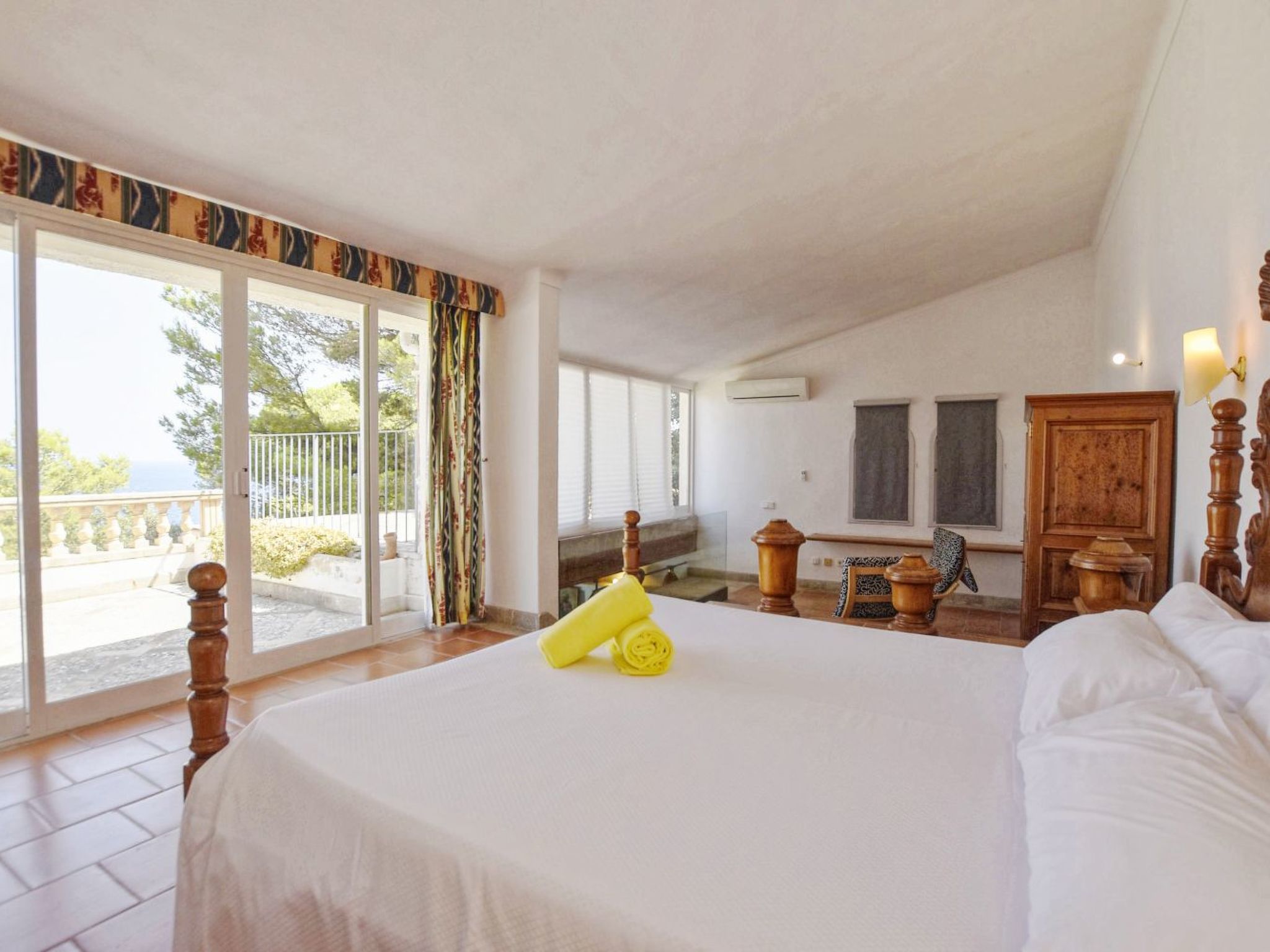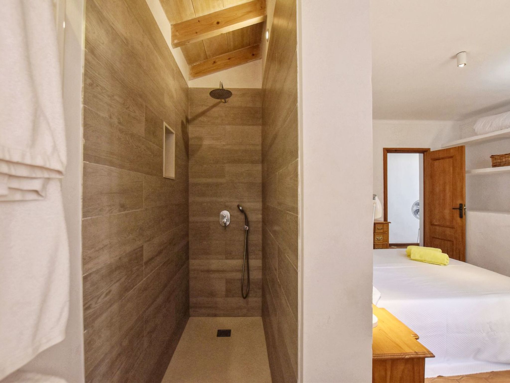 Outside, the house boasts a swimming pool for exclusive use, perfect for cooling off at any time of the day, and a private garden that invites you to relax among the local flora. Outdoor enthusiasts will enjoy the equipped terrace and the possibility to prepare delicious meals outdoors thanks to a mobile barbecue. In addition, the outdoor shower with hot water and the sunbathing area extend the options to enjoy the weather and the views without having to leave the comfort of the house.