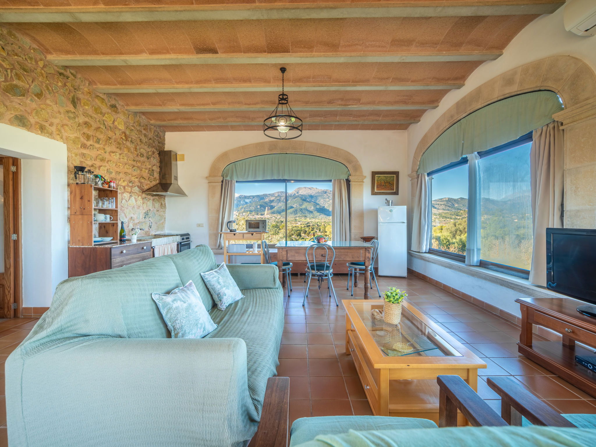 "Son Estaras II", Appartement de 3 pièces 90 m2 au 1er étage. Logement idéal pour 2 adultes. Spacieux et clair, complètement rénové, aménagement fonctionnel et confortable: grand séjour/salle à manger avec baie vitrée avec table pour les repas, Télévision numérique, air-conditionné et chauffage à air chaud. Sortie sur la terrasse. Salon. 1 chambre double avec 1 grand-lit " 2.5 km, gare ferroviaire "Inca" 4 km, plage de sable "Playa d'Alcúdia" 26 km. Port plaisance 25 km, terrain de golf (18 trous) 21 km, chemins de randonnées pédestres depuis la maison 3 km, piste cyclable 500 m. Attractions à proximité: Ciudad d'Inca 3 km, Pueblos,Campanet,Caimari,Moscari,Mancor. Palma City 31 km, Mallorca Fashion Oulet & Cinemas 24 km, Playa de Formentor 35 km, Ermita de Lluc 15 km. Région de randonnées: Serra de Tramuntana, Puig de Santa Magdalena, Inca. Veuillez noter: voiture recommandée. Bien convenant à 2 adultes. Le propriétaire habite sur le même terrain. Animaux dans le voisinage. Aéroport 42.4 km de la maison. D’autres appartements sont également proposés à la location dans cette maison de vacances. La propriété référencée ES8363.117.1 est située sur le même terrain.