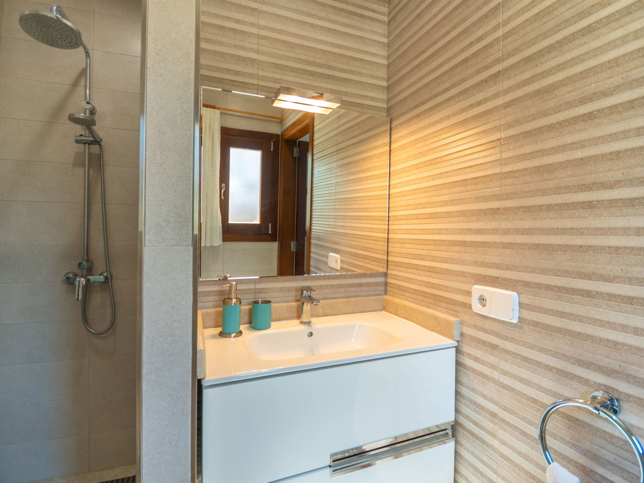"Son Vivot", maison 3 pièces 250 m2 sur 2 niveaux. Logement idéal pour 4 adultes. Spacieux et clair, complètement rénovée, aménagement très fonctionnel et plaisant: grand séjour/salle à manger ouvert avec porte coulissante, baie vitrée avec cheminée, table pour les repas, TV (satellite), Télévision numérique et écran plat. Sortie sur la terrasse, sur le jardinet. Cuisine ouverte (four, lave-vaisselle, 3 plaques vitrocéramiques, micro-ondes, congélateur, cafetière électrique). Sortie sur la terrasse, sur la piscine. Douche/WC. À l'étage inférieur: 1 grande chambre double avec baie vitrée avec 1 grand-lit (150 cm, longueur 200 cm), douche/WC. Sortie sur le jardinet. 1 grande chambre double avec baie vitrée avec 2 lits (90 cm, longueur 190 cm), douche/WC. Sortie sur le jardinet. Grande terrasse, grand jardinet, tonnelle. Meubles de terrasse, mobilier de balcon, barbecue, chaises longues (4), loggia. Très belle vue panoramique sur les montagnes, les alentours et la ville. A disposition: lave-linge, fer à repasser, chaise haute pour enfant, lit bébé, sèche-cheveux. Internet (Connexion WIFI, gratuit). Place de parking (cloturée) près de la maison. Adapté(e) aux familles. ETV/12237 // Reg. Nr.: ESFCTU0000070110009868390000000000000000000ETV/122379