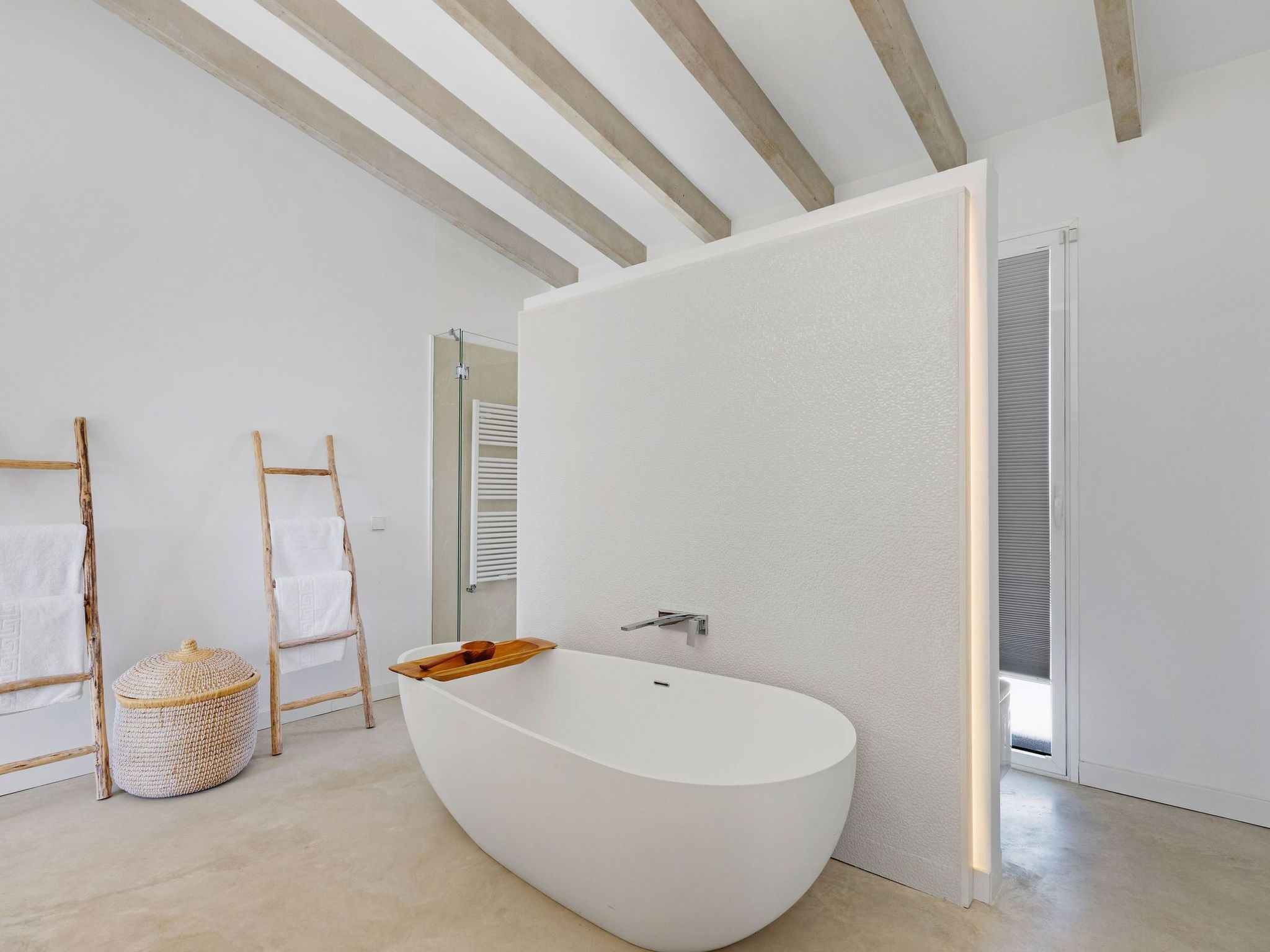 Inside, the finca is distinguished by its elegant and spacious living-dining room, a fully equipped kitchen that will satisfy the needs of any amateur chef, and a gym to keep you in shape. The 4 double bedrooms are oases of relaxation, while the three bathrooms are equipped with premium Rituals toiletries, guaranteeing a luxurious wellness experience with every use.
