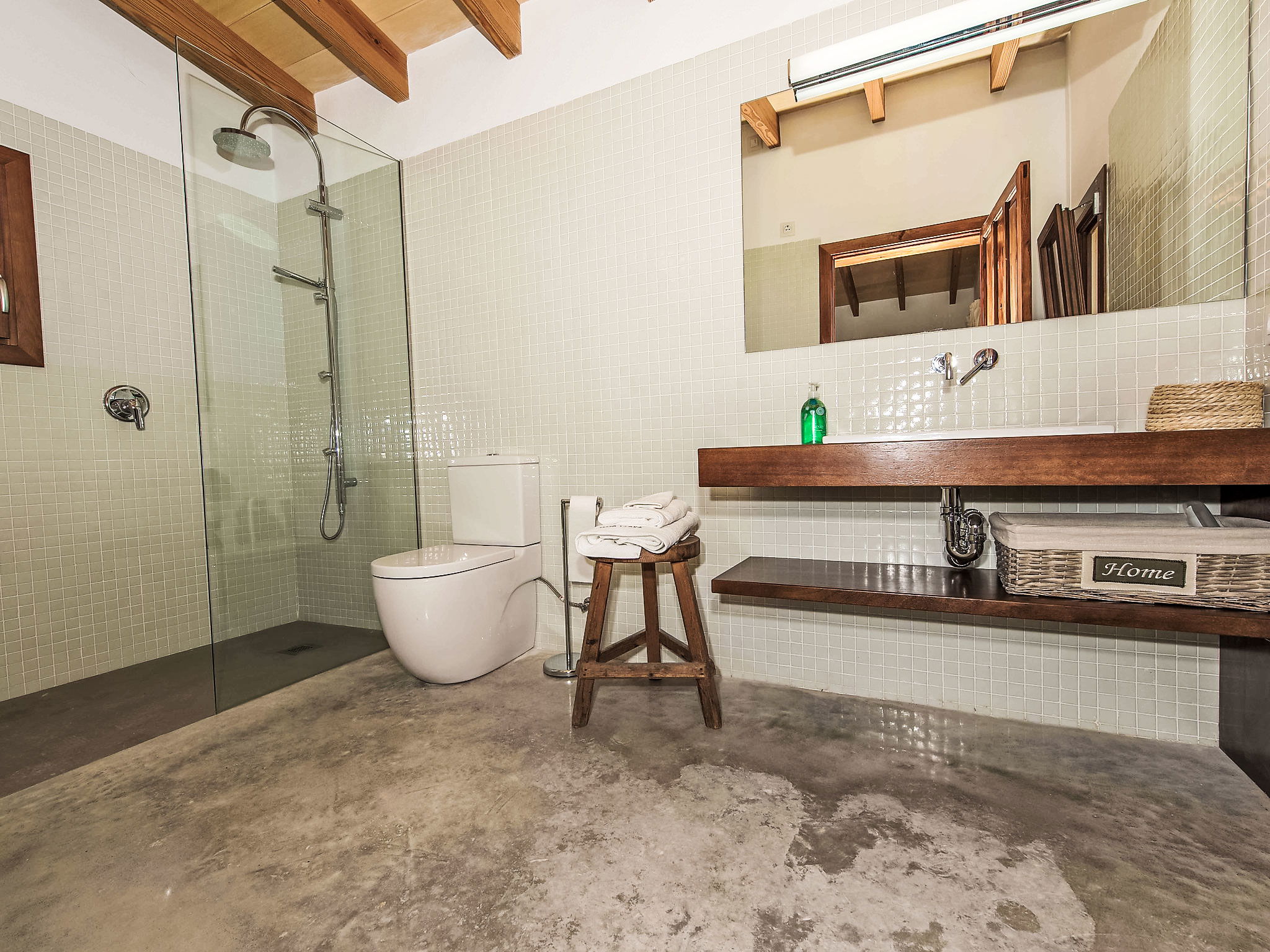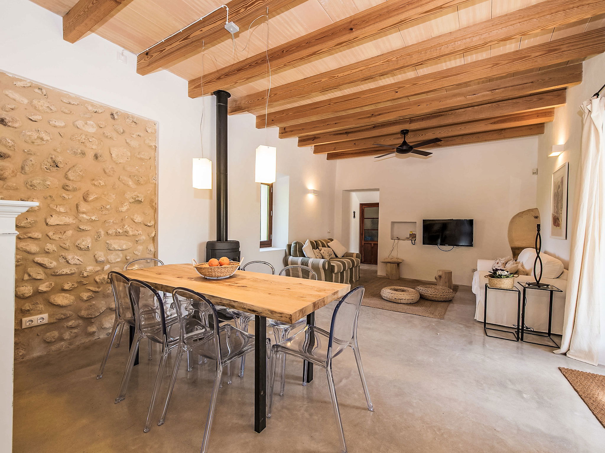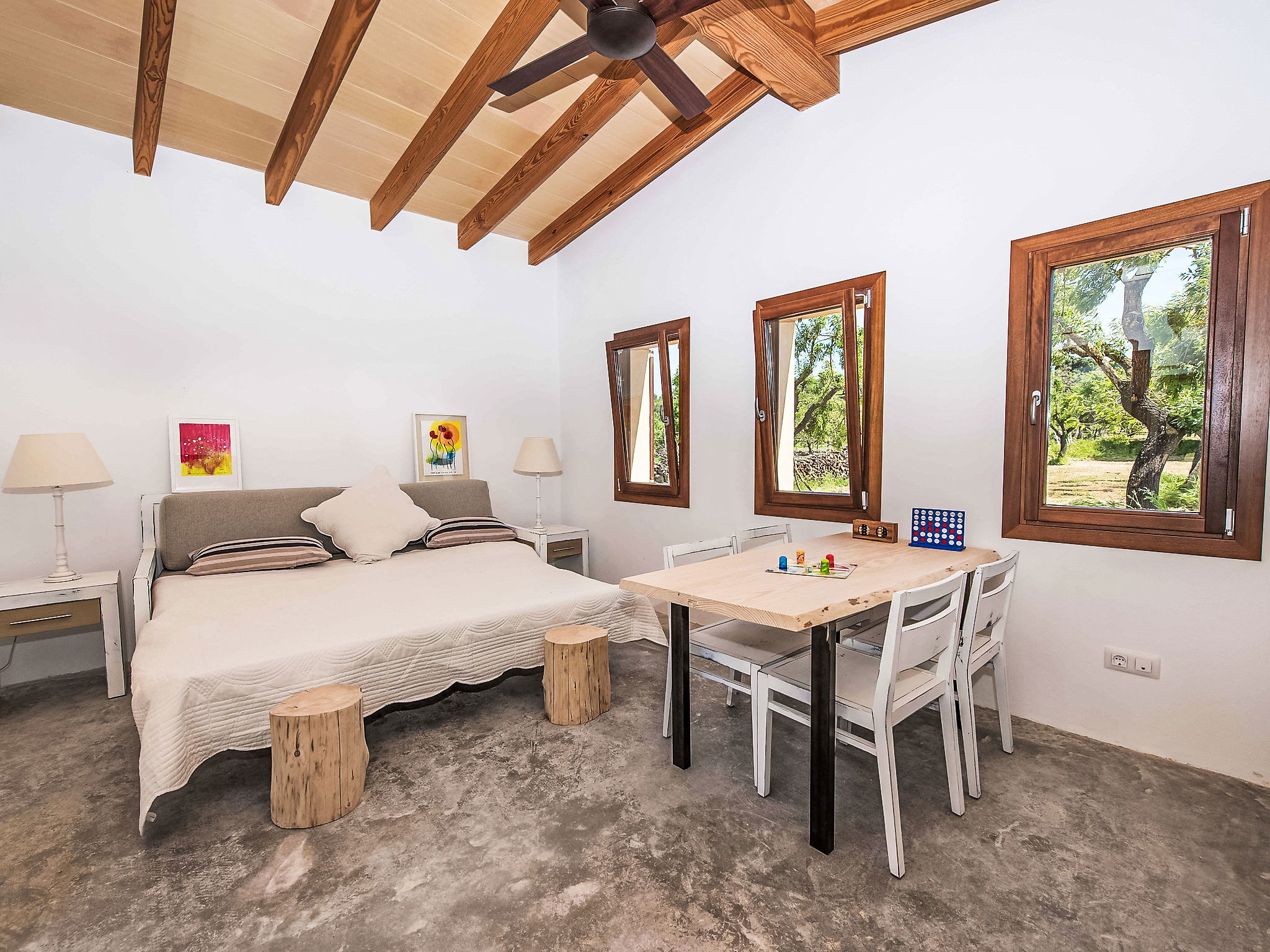 Grand domaine moderne, rustique "Cas Ciutada", année de construction 1850, renové en 2015, environné par les champs. Location composée d'un bâtiment principal et d'une annexe en-dehors de la localité, à 3 km du centre de Selva, situation tranquille, ensoleillée, à 25 km de la mer, dans la verdure. A usage privé: terrain à l'état naturel (clôturé) avec pelouse et plantes, piscine (12 x 5 m, profondeur 50 - 180 cm, disponibilité saisonnière: 01.Jan. - 31.Dec.). WC dans l'espace piscine, douche extérieure, ping-pong, jardinet, tonnelle, pergola, meubles de jardin, barbecue, espace barbecue, entretien de la piscine par le propriétaire/jardinier. Infrastructures de la Maison: accès internet, Connexion WIFI, réduit pour bicyclettes, air-conditionné. Place de parking près de la maison sur le terrain. Magasin d'alimentation 2 km, supermarché 3 km, restaurant 3 km, bar 3 km, arrêt de bus "Selva 1 (58011)." 3 km, plage de sable "Playa de Port d'Alcúdia" 27.5 km. Port plaisance 27.8 km, terrain de golf (18 trous) 24 km, tennis 4 km, centre équestre 5 km, centre sportif 5 km, chemins de randonnées pédestres depuis la maison 4 km, piste cyclable 100 m. Attractions à proximité: Ciudad d'Inca 4 km, Pueblos,Campanet,Caimari,Moscari,Mancor. Palma City 31 km, Mallorca Fashion Oulet & Cinemas 24 km, Playa de Formentor 35 km, Ermita de Lluc 15 km. Région de randonnées: Serra de Tramuntana, Puig de Santa Magdalena. Veuillez noter: voiture recommandée. Indiqué pour séniors. Bien convenant à 8 adultes. Le propriétaire n'accepte pas les groupes de jeunes. Animaux dans le voisinage. Aéroport 40 km de la maison.