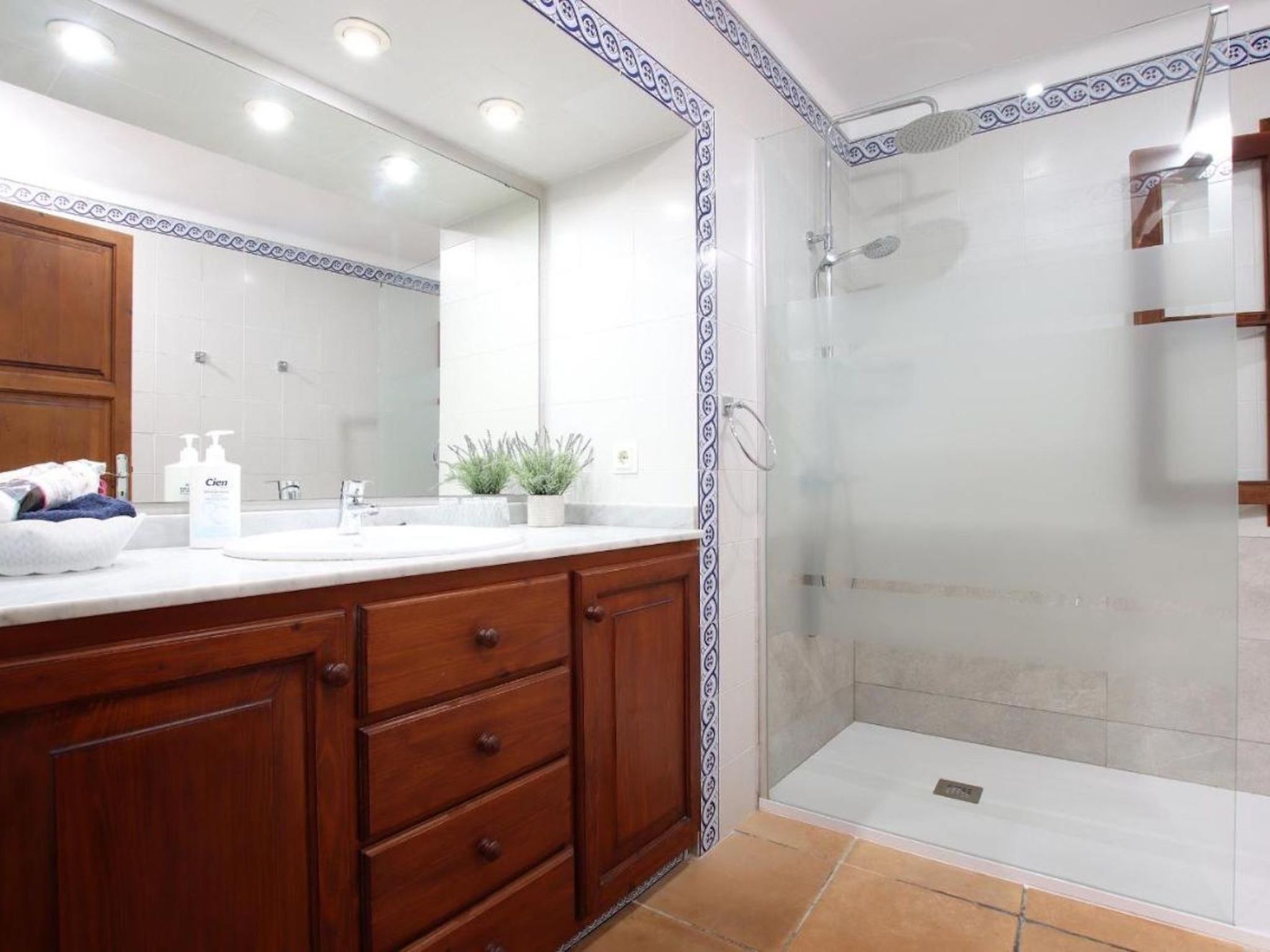On the floor we find the bedrooms; these consist of two doubles and one twin. All of them share two bathrooms, one with bathtub and one with shower. There is also a toilet with shower outside the house, near the barbecue area.