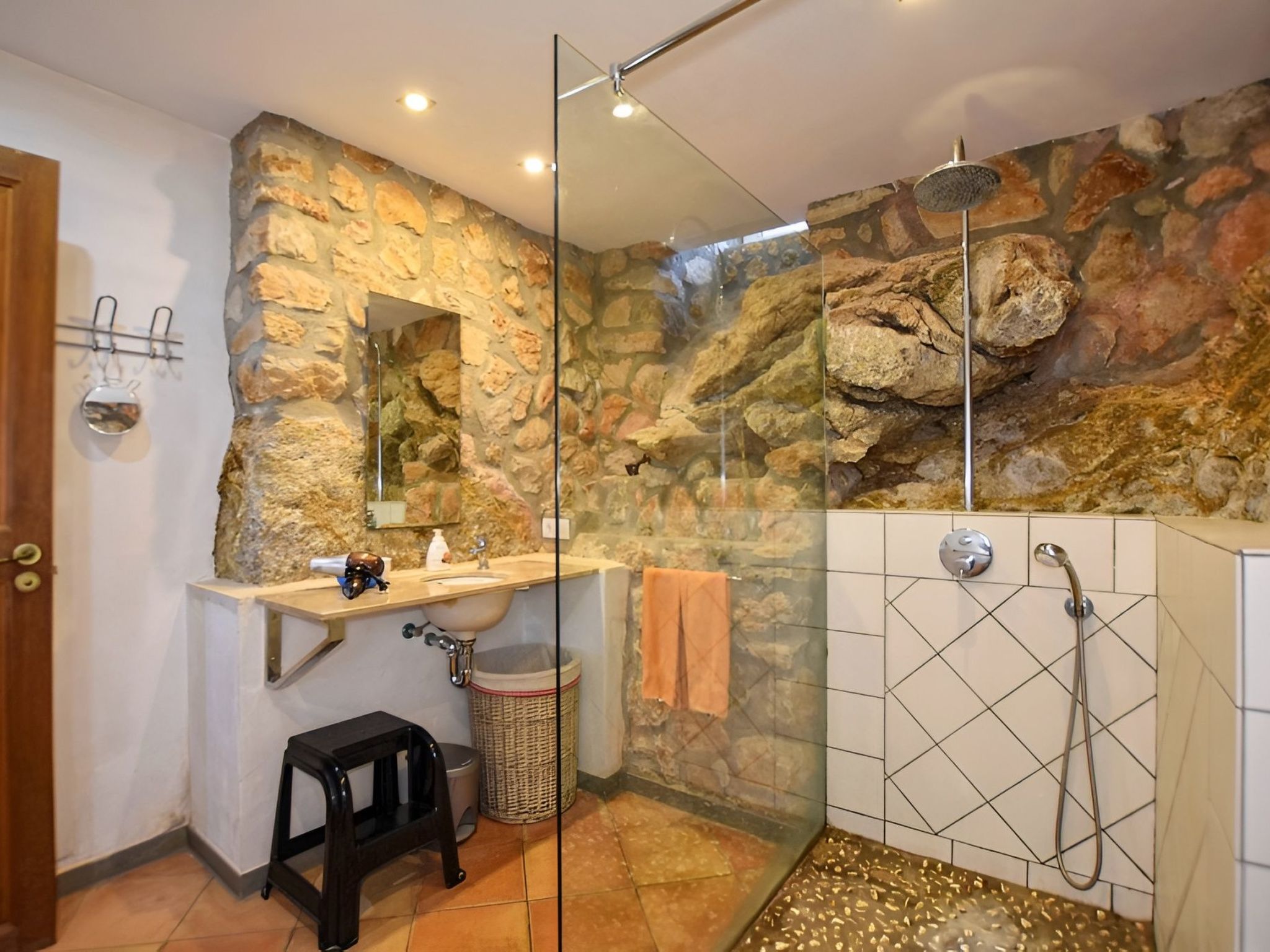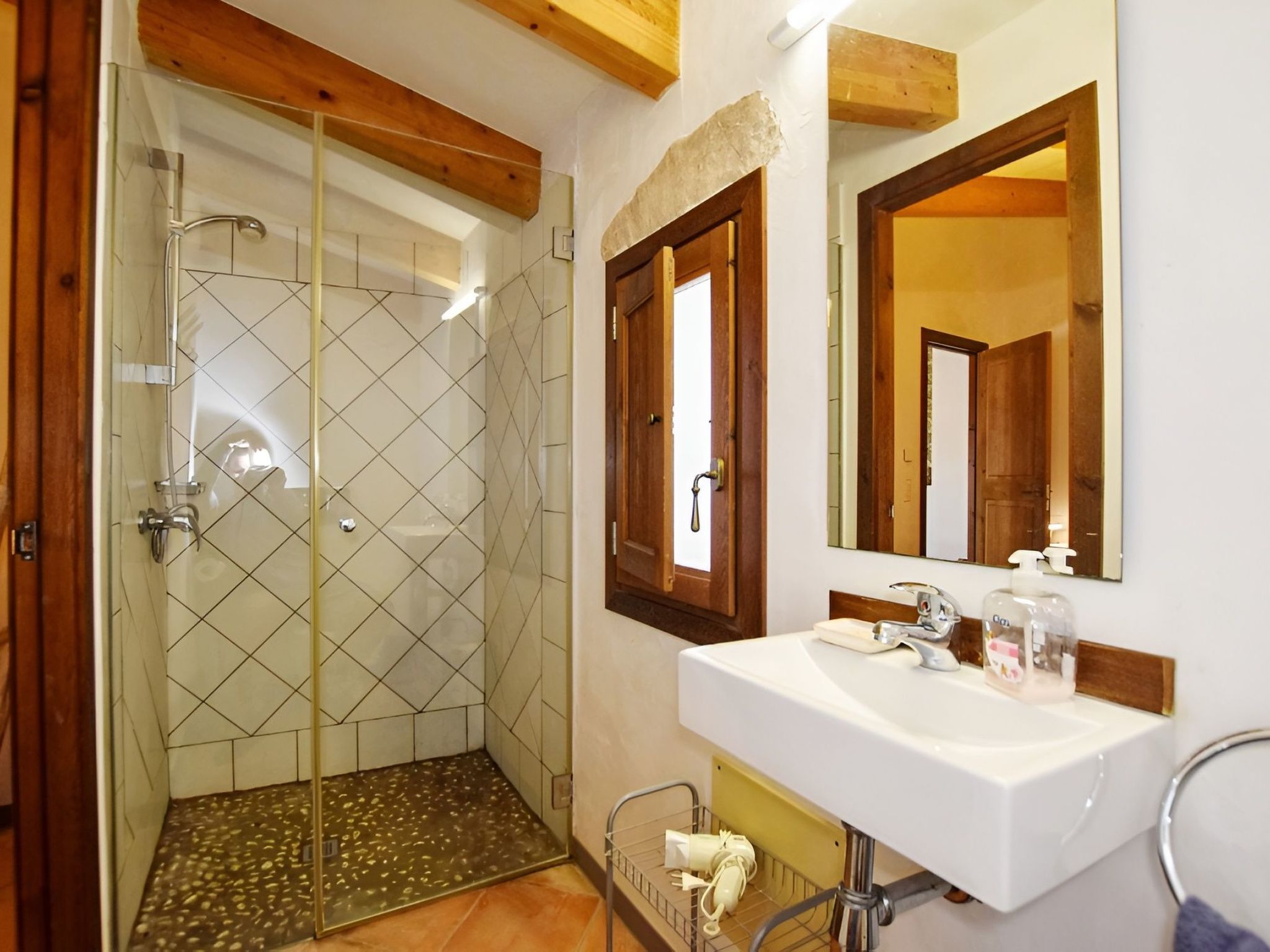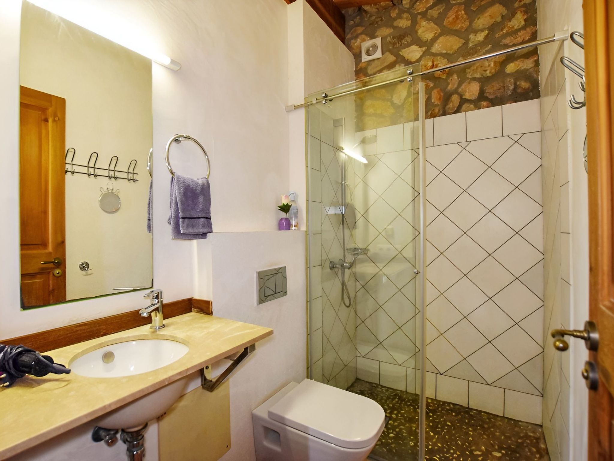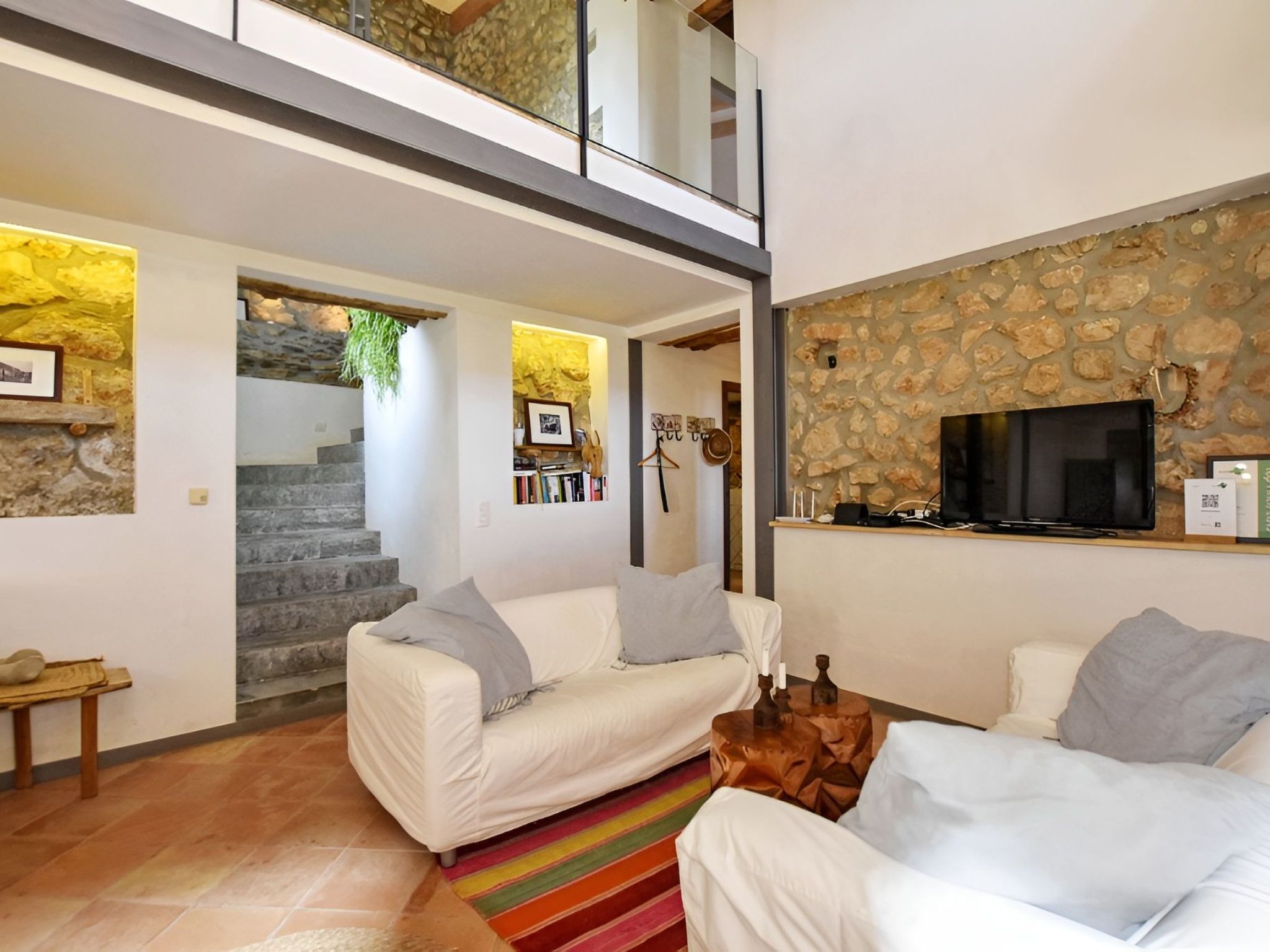 L'emplacement de la finca impressionne avec une vue panoramique fantastique sur le paysage naturel environnant, jusqu'à la mer. L'endroit est agréable et isolé, mais il ne l'est pas, car le village de Sant Llorenç n'est qu'à 5 minutes de la finca. La maison offre environ 250 m² d'espace habitable sur deux étages, au total quatre chambres doubles (4 lits doubles) et trois salles de bains avec douche.