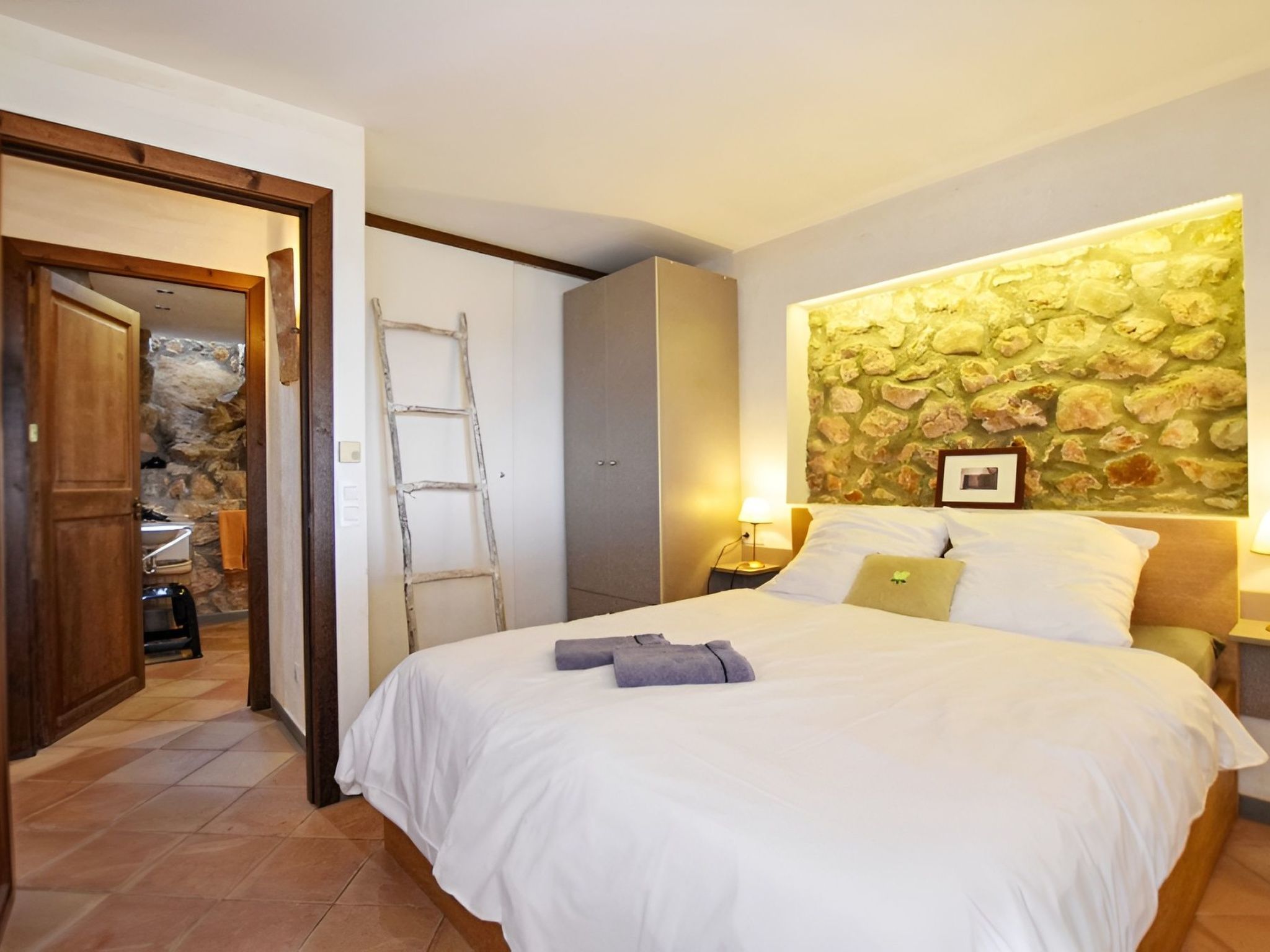Les trois chambres de l'étage supérieur sont climatisées et deux d'entre elles ont accès à une terrasse avec une belle vue. Le rez-de-chaussée abrite un salon-salle à manger ouvert et une cuisine ouverte moderne. Au total, trois salles de bains avec douche sont disponibles, dont une en suite.