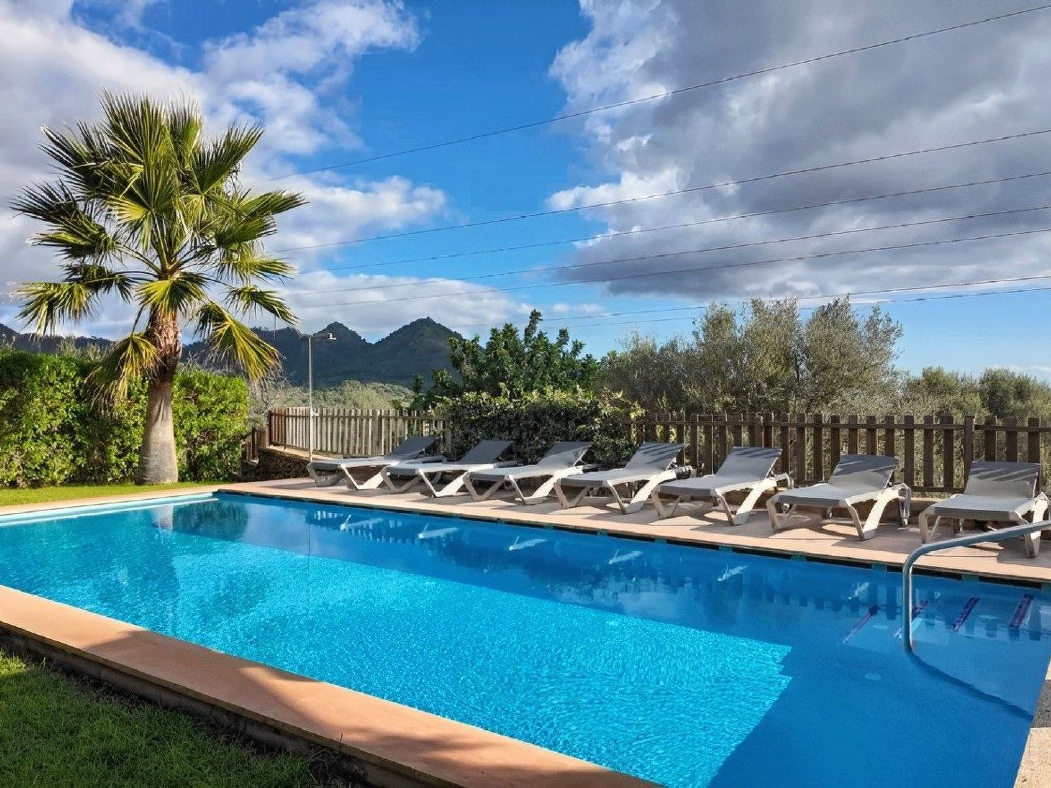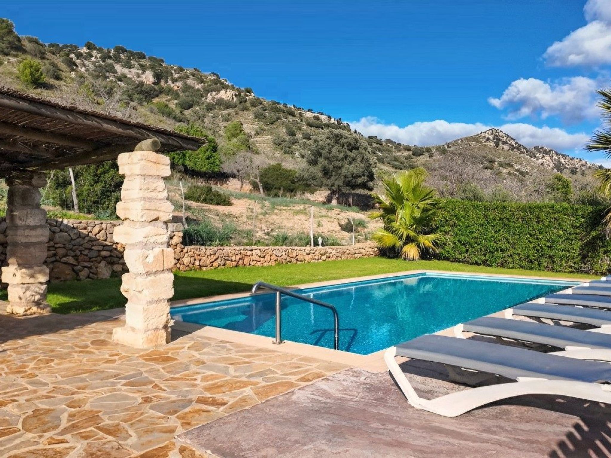 La terrasse de la piscine est littéralement intégrée dans le paysage montagneux, à quelques mètres seulement de la maison. Le point fort est la piscine de 9 m x 5 m (profondeur 1,20 m x 1,90 m) avec des chaises longues et une terrasse couverte autour de la piscine avec une pelouse bien entretenue. La terrasse de la piscine offre une vue panoramique fantastique sur la mer. Sur la finca (clôturée) vit une famille d'ânes et il y a des chats sauvages, bien qu'ils soient très timides.