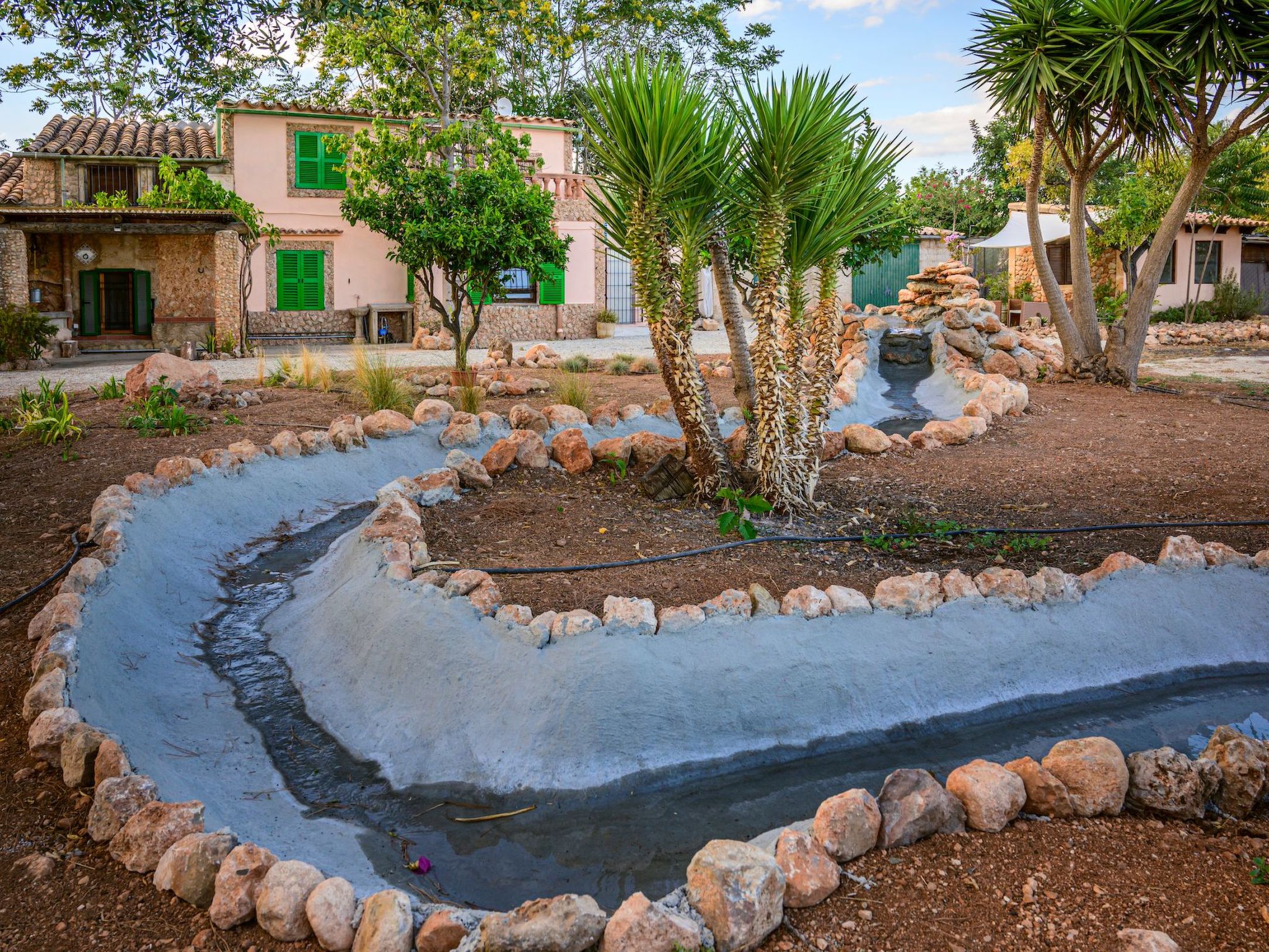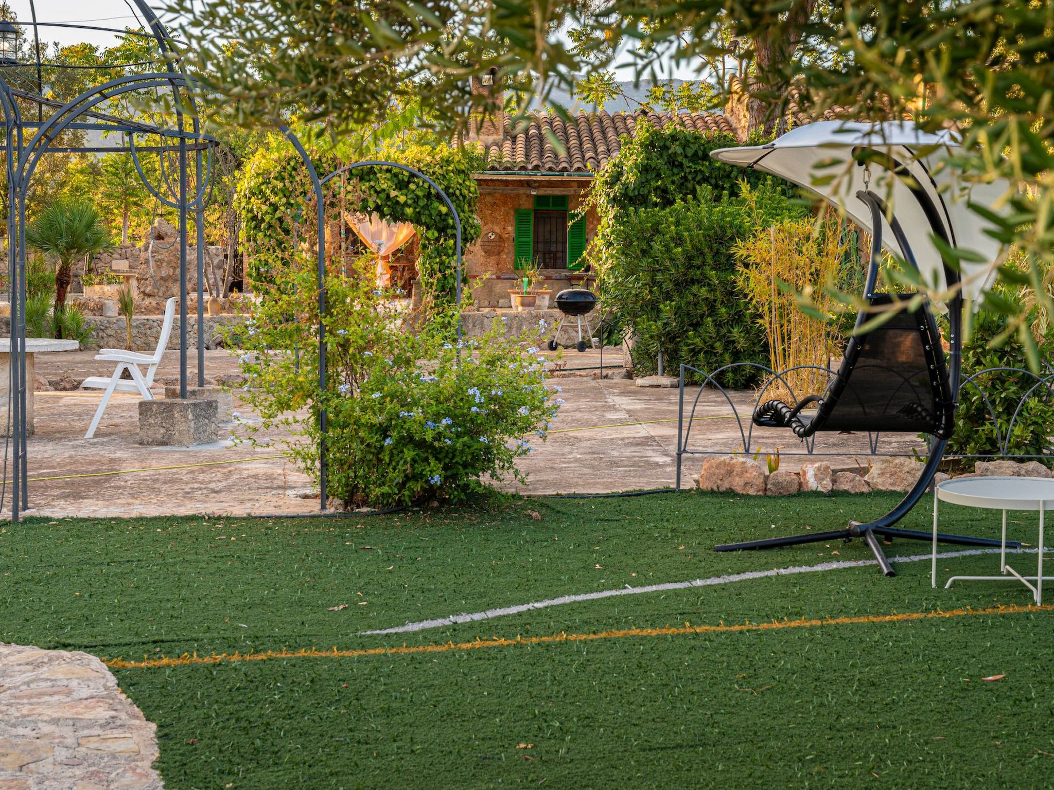 The location of the villa is simply unbeatable. Located close to the village of Santa Maria, exploring the superb local gastronomic offerings, renowned wineries and vineyards, supermarkets, pharmacies, and petrol stations becomes an easy experience. Just 12 km away, the city of Palma offers an expansion of possibilities, from urban adventures to natural retreats in the World Heritage "Serra de Tramuntana", to dream beaches just a few kilometres away, guaranteeing a varied and experience-rich stay.