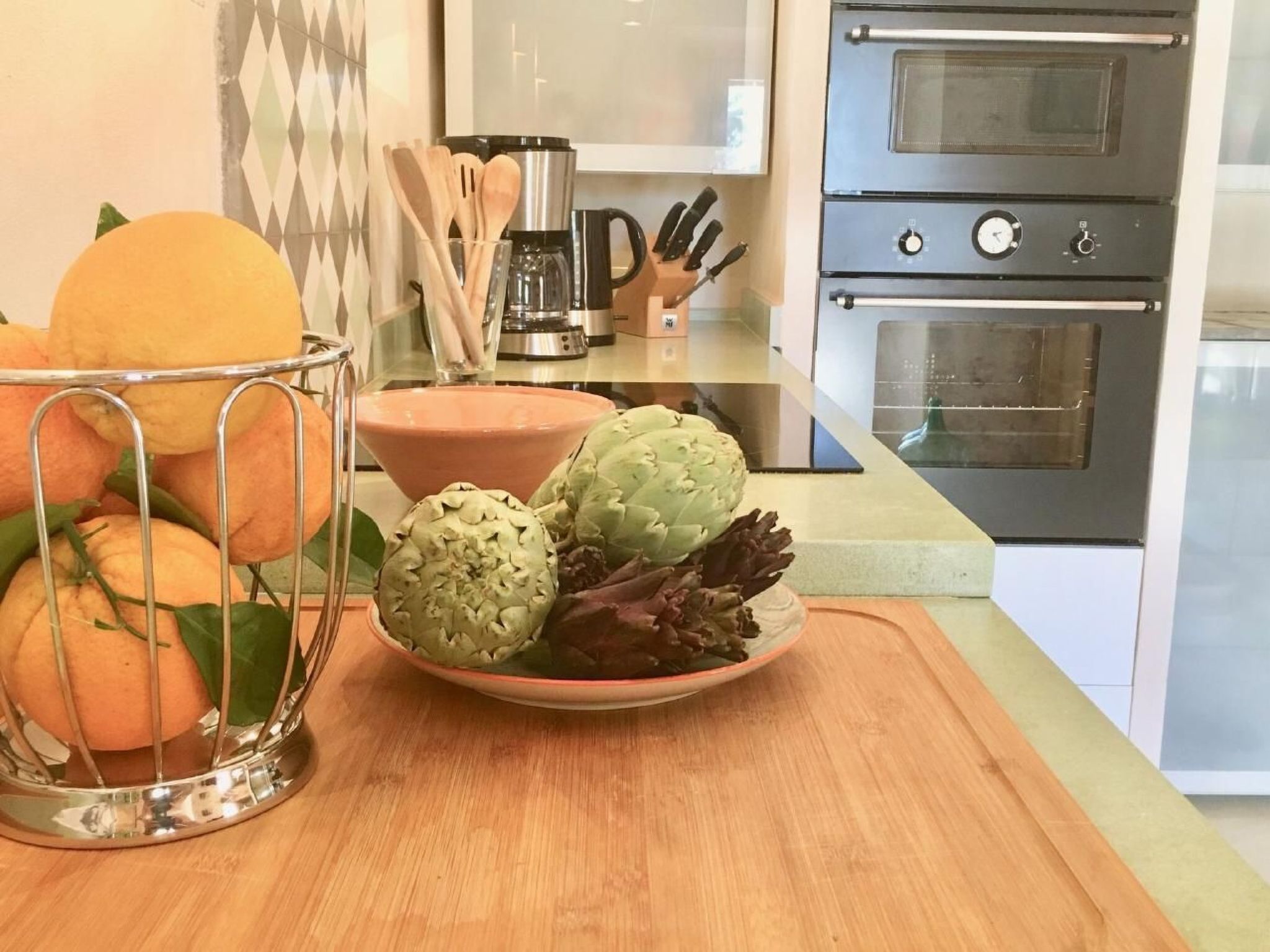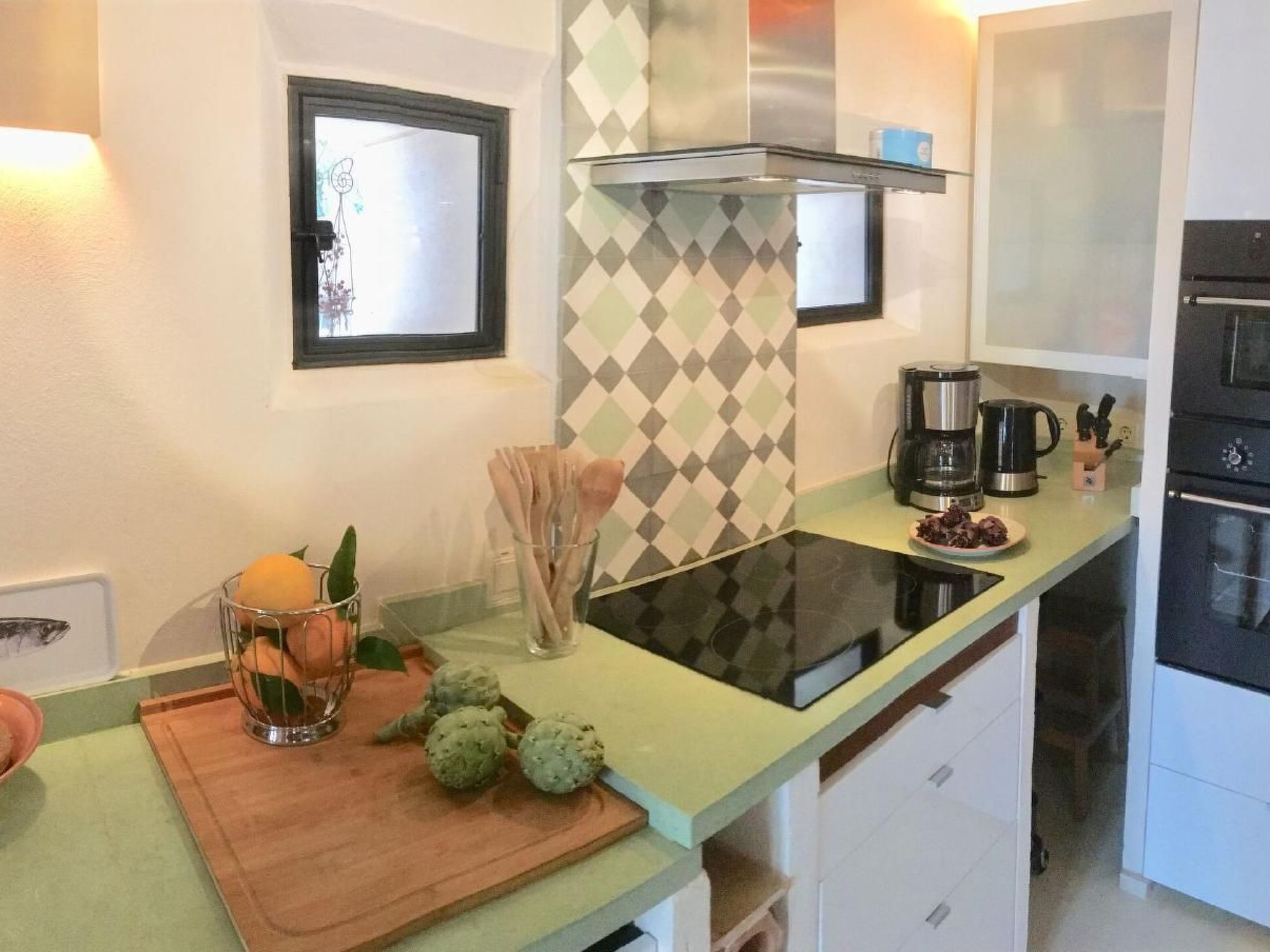 Kitchen: Nespresso coffee machine, French press, espresso maker, filter coffee machine, blender, electric citrus juicer, egg boiler, kettle, 2 toasters, ceramic hob, side-by-side fridge, sufficient crockery and glasses for 10 people, cookery books, children's cutlery and plates, 2 dehumidifiers, battery-powered vacuum cleaner, safe,