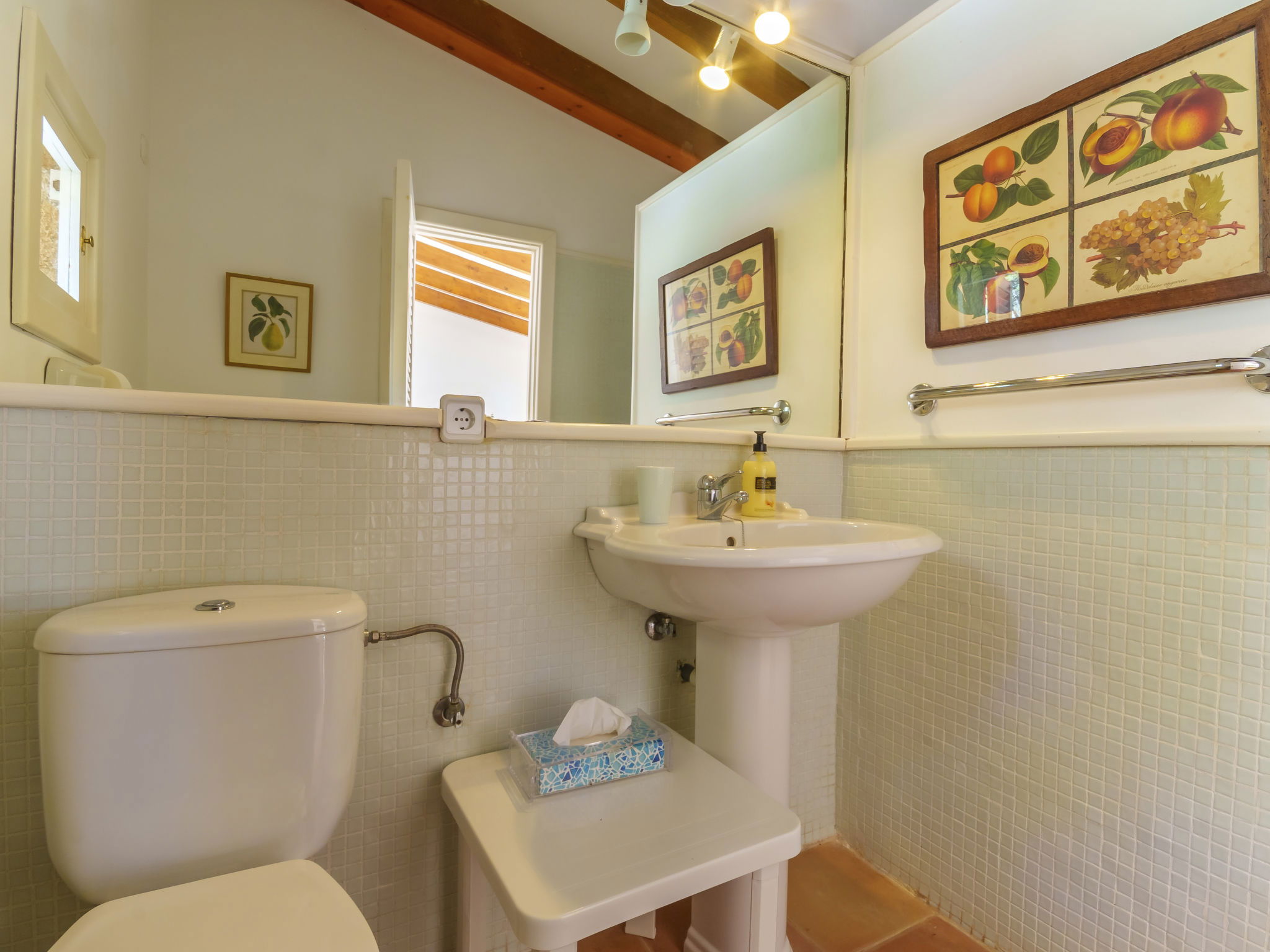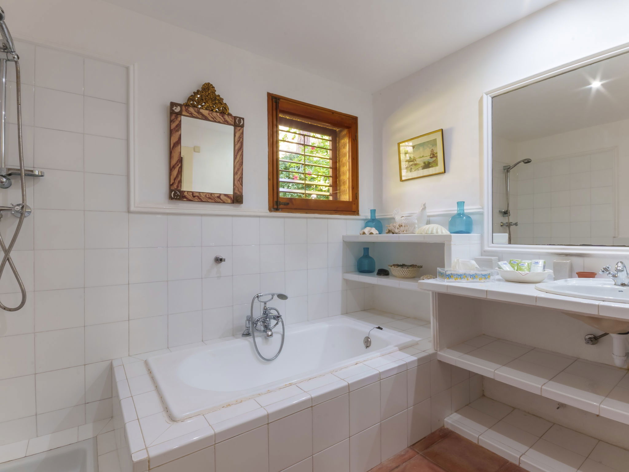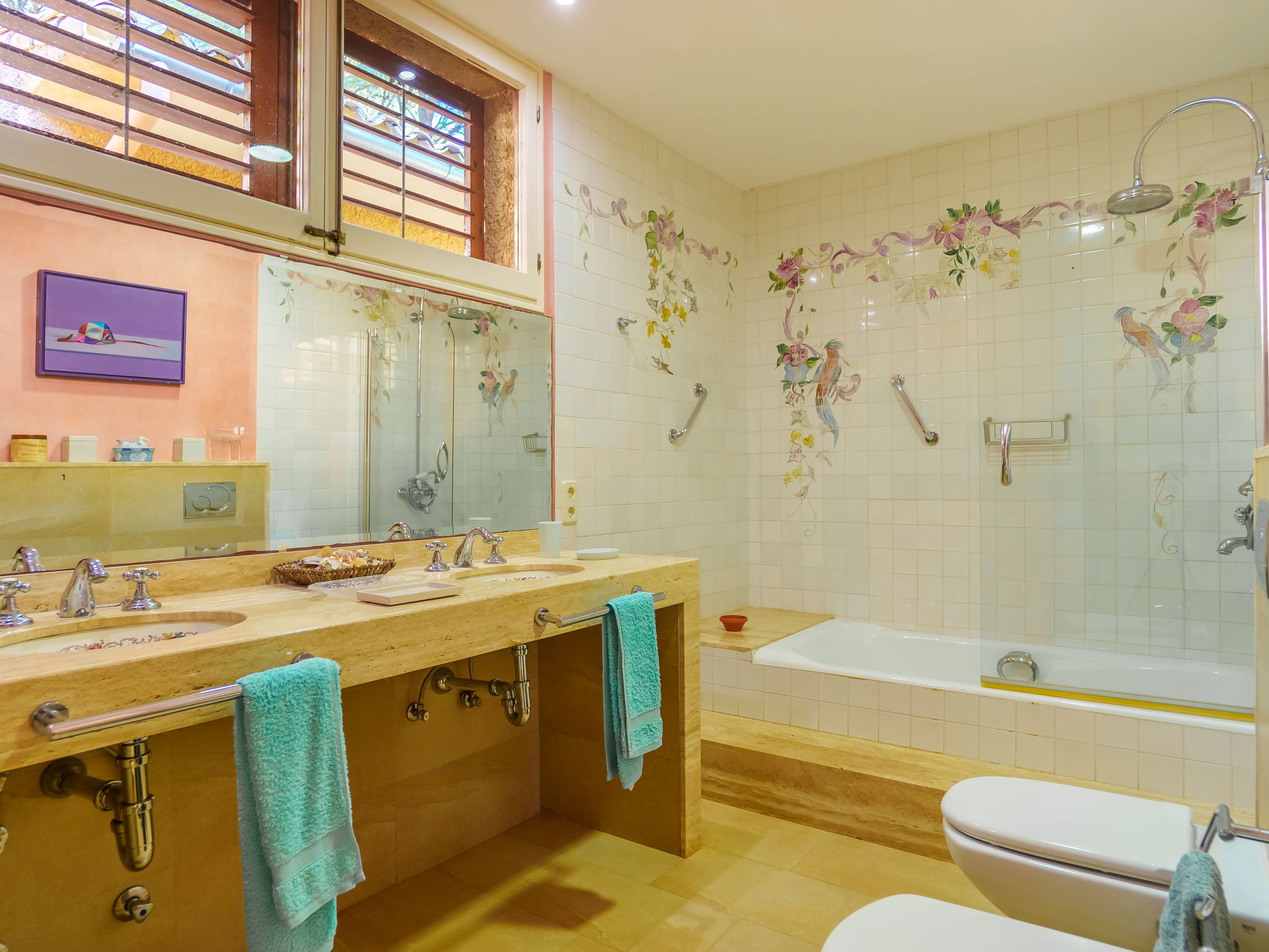 Villa 7 pièces 360 m2. Aménagement de style: séjour/salle à manger avec table pour les repas, TV (satellite), DVD et radiateur électrique. Sortie sur la terrasse. Séjour/salle à manger avec cheminée et radiateur électrique. Sortie sur la terrasse. 1 chambre avec 1 grand-lit (180 cm), bain/WC et double vasque. Sortie sur la terrasse. 1 chambre avec 2 lits, bain/WC et double vasque. Sortie sur la terrasse. 1 chambre avec 2 lits et douche/WC. Sortie sur la terrasse. 2 chambres, chaque chambre avec: 2 lits, douche/WC et air-conditionné. Sortie sur la terrasse. Cuisine (four, lave-vaisselle, 3 plaques vitrocéramique, grille-pain, four micro-ondes, congélateur, cafetière électrique). Bain/douche/WC. Terrasse 60 m2, terrasse 100 m2. Meubles de terrasse, chaises longues. Belle vue sur la mer. A disposition: lave-linge, fer à repasser, chaise haute pour enfant, lit bébé jusqu'à 2 ans. Internet (Connexion WIFI, gratuit). Veuillez noter: maison non-fumeur. Pas de liaison interne entre les différentes unités. En cas de réservation au tarif pour 6 personnes indisponible(s): l'annexe. En cas de réservation au tarif pour 8 personnes indisponible(s): une chambre dans l'annexe. 2461/2017/ET Costa de los Pinos à 7 km de Son Servera: Villa "Finca L'Embat (DLP100)". Location composée d'un bâtiment principal et d'une annexe, à 1.2 km du centre de Costa de los Pinos, à 6.5 km du centre de Cala Millor, à 23 km du centre de Manacor, sur un versant, quartier résidentiel, à 50 m de la mer. A usage privé: terrain 6'500 m2, jardin sur plusieurs niveaux entretenu avec pelouse et arbres. Terrasse (200 m2), meubles de jardin, place de parking (couvert) sur le terrain. Magasins 1.2 km, plage de sable 2 km, plage de rochers 50 m. Terrain de golf 2 km. Veuillez noter: voiture recommandée.